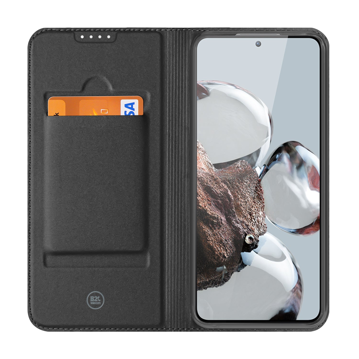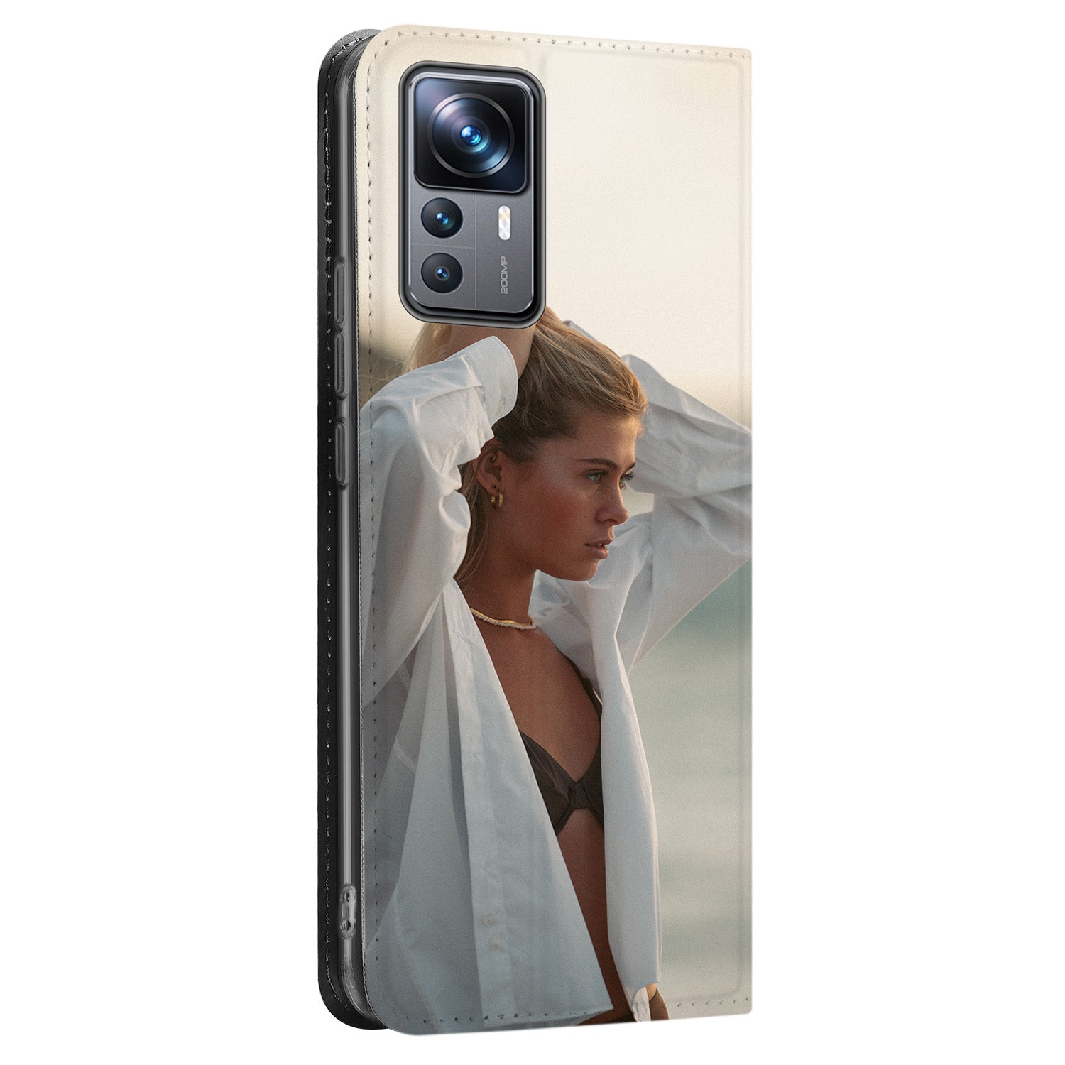 Stand Case Hoesje Maken voor de Xiaomi 12T | 12T Pro. Ben je op zoek naar een originele en unieke bescherming voor je telefoon? Dan ben je bij B2C Telecom aan het juiste adres! Je kunt via onze website gemakkelijk een telefoonhoesje ontwerpen met foto's, tekst of bedrijfslogo. De mogelijkheden zijn eindeloos. Wees creatief en upload foto's of plaatjes van je kinderen, huisdieren, familie, hobby of favoriete voetbalclub. De foto's of plaatjes kun je in de gewenste grootte plaatsen of draaien voor een speels effect. Maak het hoesje persoonlijker door je naam of quote toe te voegen. Je kunt kiezen uit verschillende lettertypes; van strak tot vetgedrukt of ga je liever voor iets sierlijks? Het kan allemaal! De kers op de taart is natuurlijk de toevoeging van een glossy-effect! Kies uit verschillende effecten en jouw hoesje wordt subtiel bedrukt met een glossy-effect. Kortom, wij bieden verschillende mogelijkheden om jouw hoesje zo persoonlijk en uniek mogelijk te maken! Jouw ontwerp wordt bedrukt op een wit hoesje gemaakt van kunstleer. De binnenkant van het hoesje is donkergrijs en heeft één vakje voor een pasje. De houder waar je je telefoon in vast zet, is gemaakt van transparante TPU. Door de magneten aan de binnenkant, blijft het hoesje stevig dicht. Een ander voordeel is dat het hoesje een stand-case functie heeft voor als je graag filmpjes kijkt op je telefoon. Overtuigd? Ontwerp dan vandaag nog je eigen telefoonhoesje en ontvang jouw ontwerp binnen een aantal werkdagen in huis!