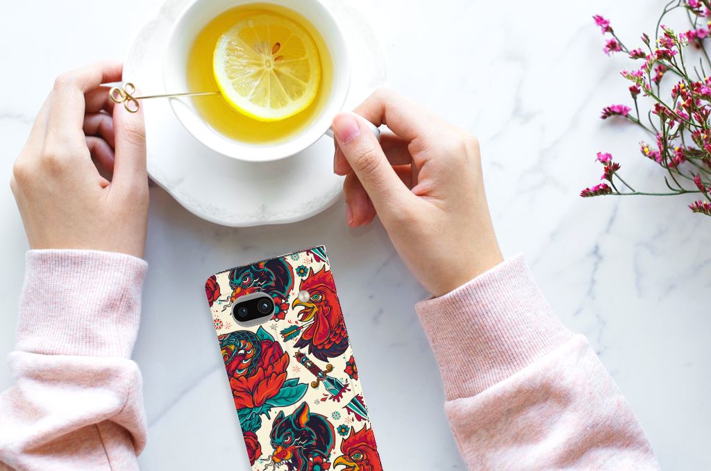 Ben je op zoek naar een stoer hoesje voor je Google Pixel 7A? Dan is dit hoesje in old skool stijl zeker iets voor jou! Het heeft wel iets weg van een tatoeage, vind je ook niet? Dit old skool vintage design wordt geprint op een Stand Case waarin je een pasje kwijt kunt. Vouw het hoesje om en zet het horizontaal neer voor als je graag filmpjes op je Google Pixel 7A kijkt. De magneten aan de binnenkant zorgen ervoor dat het hoesje dicht blijft in bijv. je tas. Bescherm jouw smartphone vandaag nog met dit stoere old skool design hoesje!
