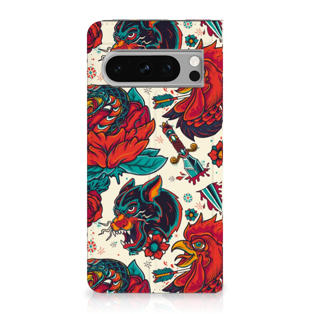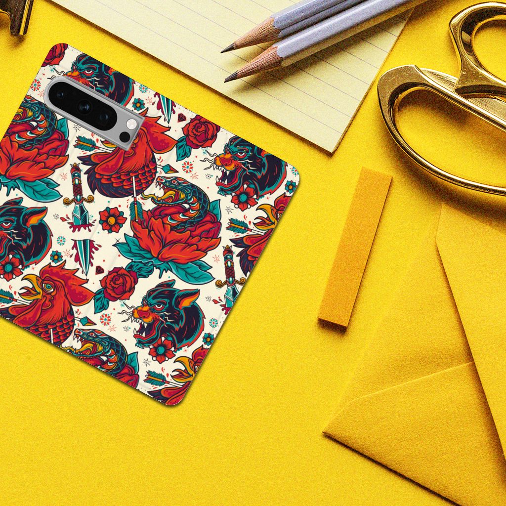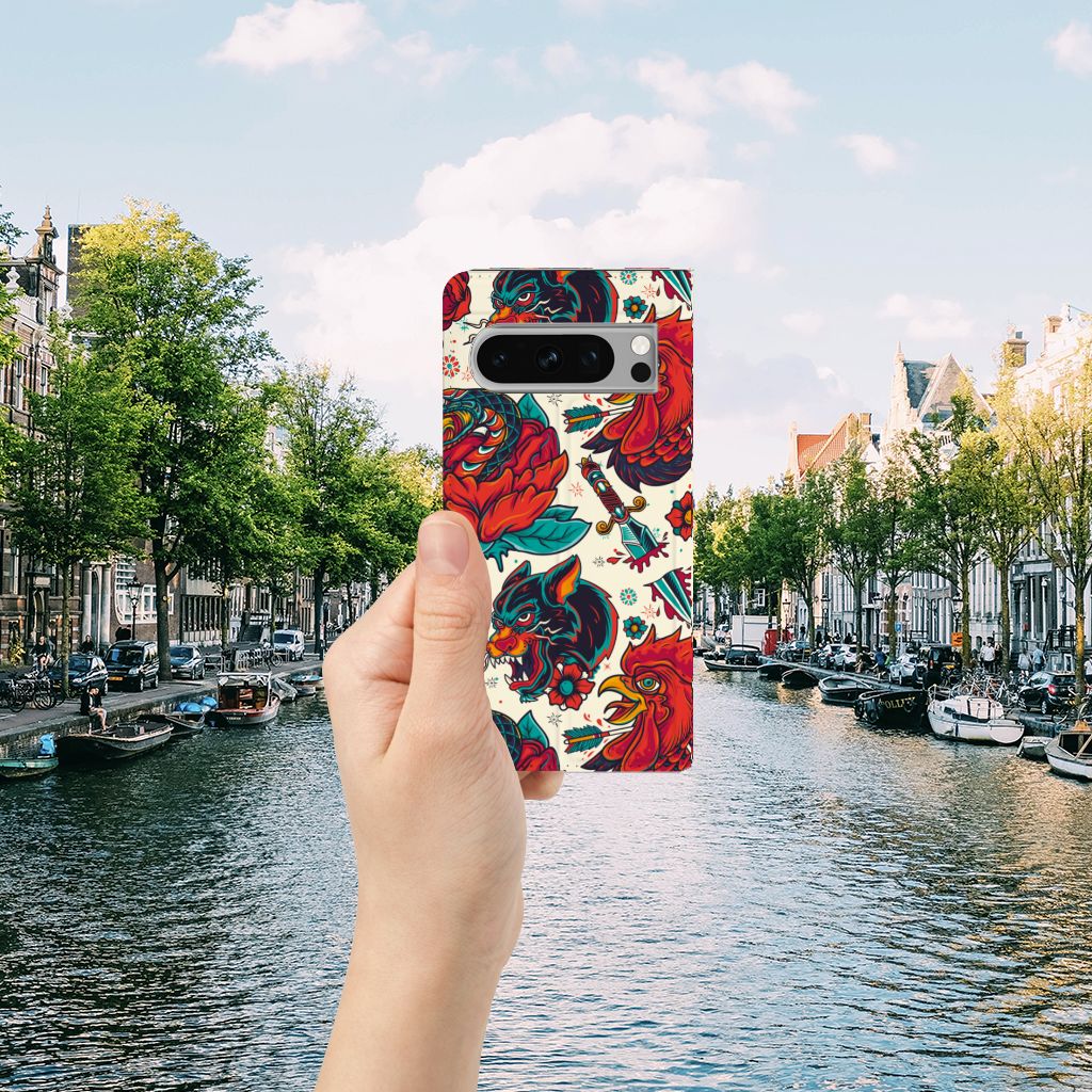 Ben je op zoek naar een stoer hoesje voor je Google Pixel 8 Pro? Dan is dit hoesje in old skool stijl zeker iets voor jou! Het heeft wel iets weg van een tatoeage, vind je ook niet? Dit old skool vintage design wordt geprint op een Stand Case waarin je een pasje kwijt kunt. Vouw het hoesje om en zet het horizontaal neer voor als je graag filmpjes op je Google Pixel 8 Pro kijkt. De magneten aan de binnenkant zorgen ervoor dat het hoesje dicht blijft in bijv. je tas. Bescherm jouw smartphone vandaag nog met dit stoere old skool design hoesje!