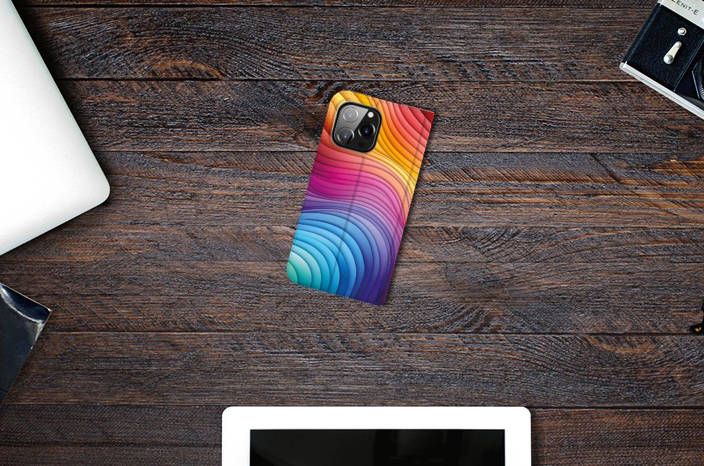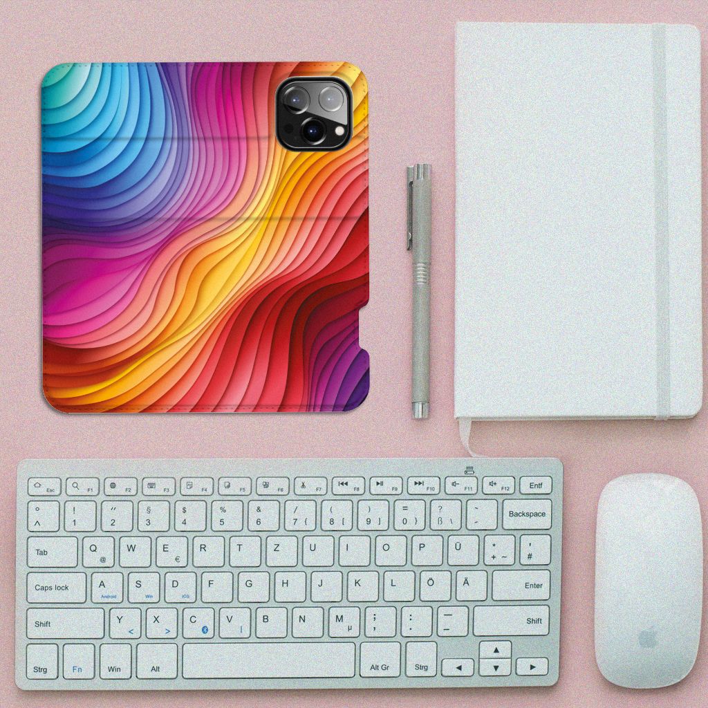 Een regenboog bestaat eigenlijk uit meer dan zeven kleuren, wist je dat? De zichtbare kleuren vloeien geleidelijk in elkaar over, waardoor er eigenlijk meer dan zeven kleuren zijn. Dat wij maar zeven ‘’stroken’’ licht zien, is dus eigenlijk gezichtsbedrog. Toch noemen wij dit hoesje regenboog, omdat wij er blij van worden! Dit design wordt geprint op een Stand Case speciaal op maat gemaakt voor de iPhone 14 Pro Max. In dit hoesje kun je een pasje kwijt, super fijn toch? Vouw het hoesje om en zet het horizontaal neer voor als je graag filmpjes op je iPhone 14 Pro Max kijkt. De magneten aan de binnenkant zorgen ervoor dat het hoesje dicht blijft in bijv. je tas. Bescherm jouw smartphone vandaag nog met dit toffe regenboog hoesje!
