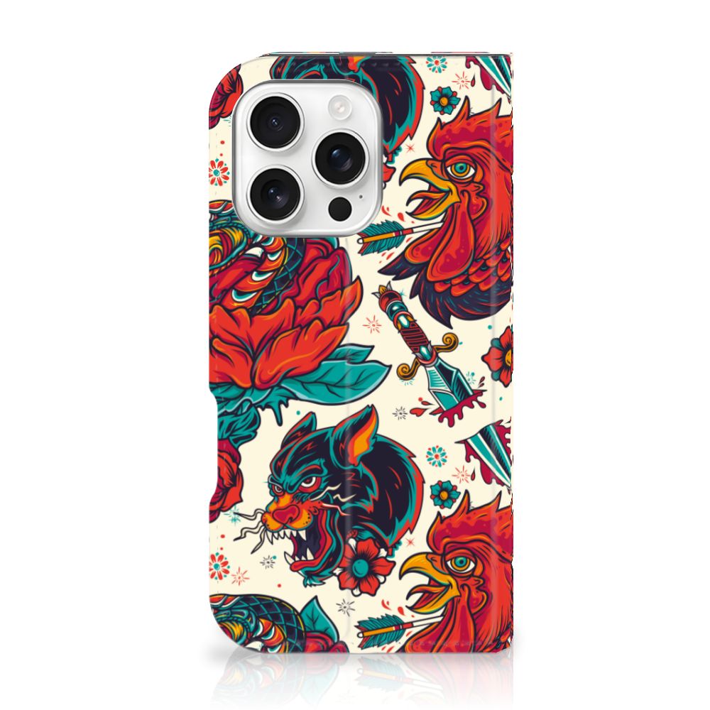 Ben je op zoek naar een stoer hoesje voor je iPhone 16 Pro? Dan is dit hoesje in old skool stijl zeker iets voor jou! Het heeft wel iets weg van een tatoeage, vind je ook niet? Dit old skool vintage design wordt geprint op een Stand Case waarin je een pasje kwijt kunt. Vouw het hoesje om en zet het horizontaal neer voor als je graag filmpjes op je iPhone 16 Pro kijkt. De magneten aan de binnenkant zorgen ervoor dat het hoesje dicht blijft in bijv. je tas. Bescherm jouw smartphone vandaag nog met dit stoere old skool design hoesje!
