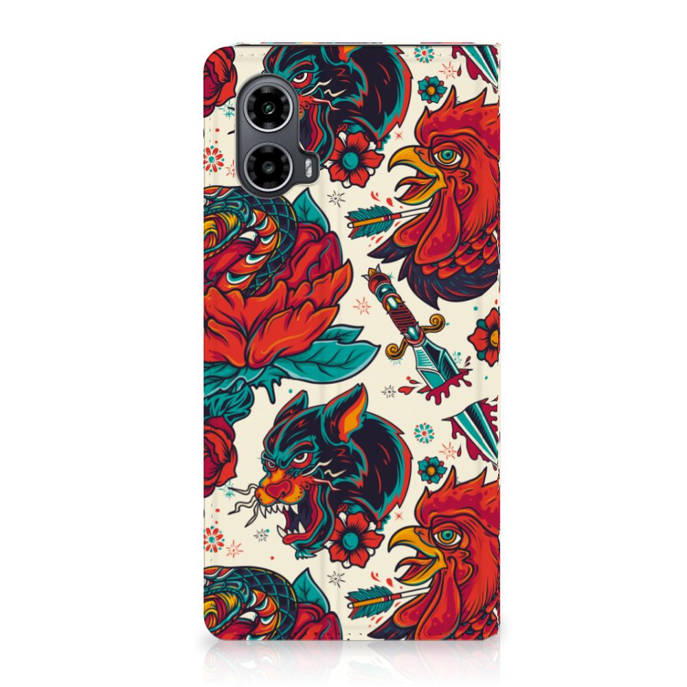 Ben je op zoek naar een stoer hoesje voor je Motorola Moto G34? Dan is dit hoesje in old skool stijl zeker iets voor jou! Het heeft wel iets weg van een tatoeage, vind je ook niet? Dit old skool vintage design wordt geprint op een Stand Case waarin je een pasje kwijt kunt. Vouw het hoesje om en zet het horizontaal neer voor als je graag filmpjes op je Motorola Moto G34 kijkt. De magneten aan de binnenkant zorgen ervoor dat het hoesje dicht blijft in bijv. je tas. Bescherm jouw smartphone vandaag nog met dit stoere old skool design hoesje!