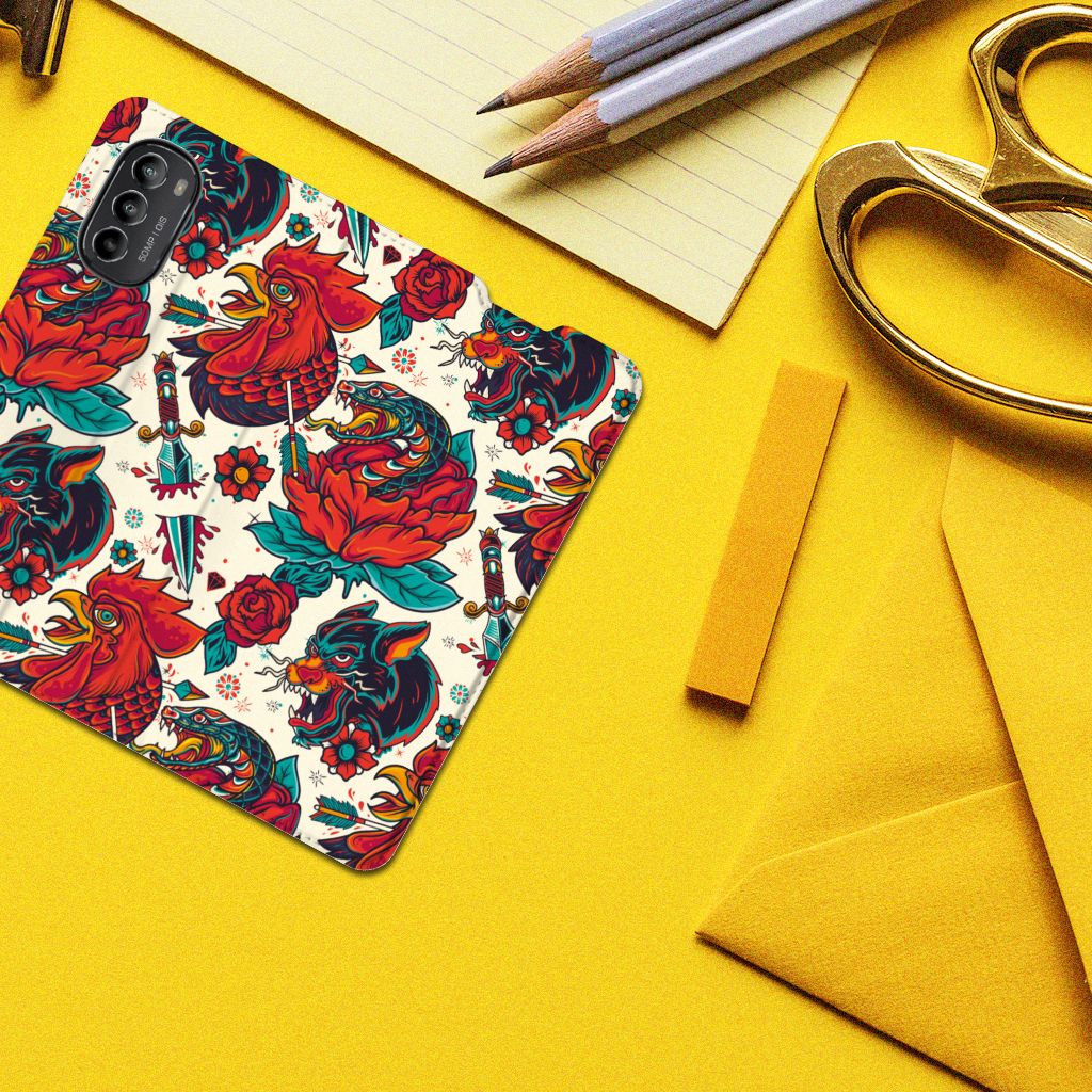Ben je op zoek naar een stoer hoesje voor je Motorola Moto G52 | Moto G82? Dan is dit hoesje in old skool stijl zeker iets voor jou! Het heeft wel iets weg van een tatoeage, vind je ook niet? Dit old skool vintage design wordt geprint op een Stand Case waarin je een pasje kwijt kunt. Vouw het hoesje om en zet het horizontaal neer voor als je graag filmpjes op je Motorola Moto G52 | Moto G82 kijkt. De magneten aan de binnenkant zorgen ervoor dat het hoesje dicht blijft in bijv. je tas. Bescherm jouw smartphone vandaag nog met dit stoere old skool design hoesje!