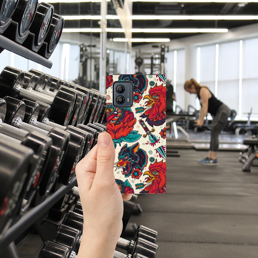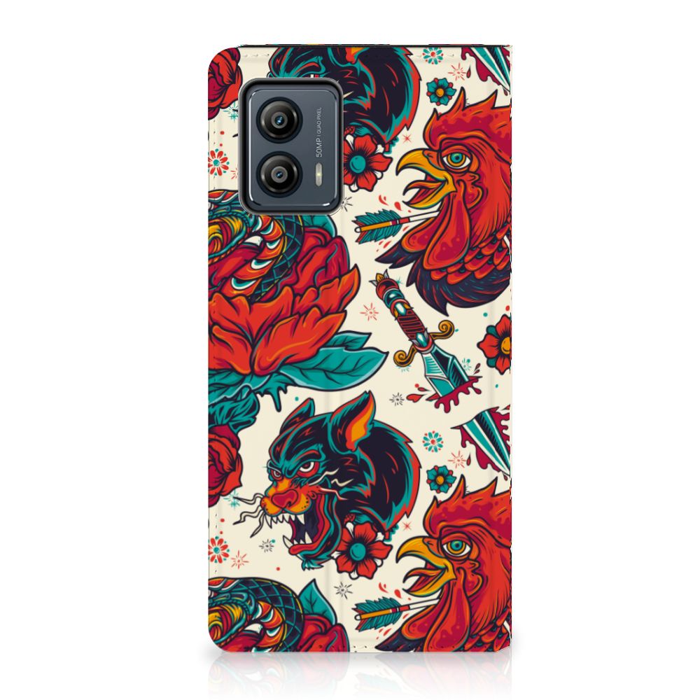 Ben je op zoek naar een stoer hoesje voor je Motorola Moto G53? Dan is dit hoesje in old skool stijl zeker iets voor jou! Het heeft wel iets weg van een tatoeage, vind je ook niet? Dit old skool vintage design wordt geprint op een Stand Case waarin je een pasje kwijt kunt. Vouw het hoesje om en zet het horizontaal neer voor als je graag filmpjes op je Motorola Moto G53 kijkt. De magneten aan de binnenkant zorgen ervoor dat het hoesje dicht blijft in bijv. je tas. Bescherm jouw smartphone vandaag nog met dit stoere old skool design hoesje!