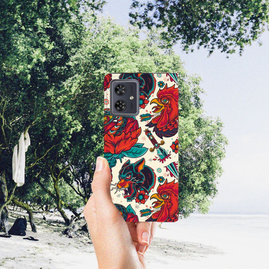 Ben je op zoek naar een stoer hoesje voor je Motorola Moto G54? Dan is dit hoesje in old skool stijl zeker iets voor jou! Het heeft wel iets weg van een tatoeage, vind je ook niet? Dit old skool vintage design wordt geprint op een Stand Case waarin je een pasje kwijt kunt. Vouw het hoesje om en zet het horizontaal neer voor als je graag filmpjes op je Motorola Moto G54 kijkt. De magneten aan de binnenkant zorgen ervoor dat het hoesje dicht blijft in bijv. je tas. Bescherm jouw smartphone vandaag nog met dit stoere old skool design hoesje!