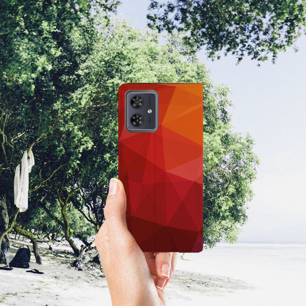 Houd jij van abstracte vormen? Dan is dit polygon red hoesje zeker iets voor jou! Door de verschillende kleuren en het verloop van donker naar licht val je gegarandeerd op met dit hoesje. Dit toffe design voor je Motorola Moto G54 wordt geprint op een Stand Case waarin je een pasje kwijt kunt. Vouw het hoesje om en zet het horizontaal neer voor als je graag filmpjes op je Motorola Moto G54 kijkt. De magneten aan de binnenkant zorgen ervoor dat het hoesje dicht blijft in bijv. je tas. Bescherm jouw smartphone vandaag nog met dit toffe polygon red design hoesje!
