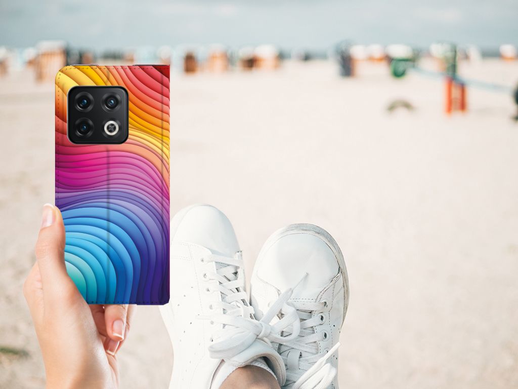 Een regenboog bestaat eigenlijk uit meer dan zeven kleuren, wist je dat? De zichtbare kleuren vloeien geleidelijk in elkaar over, waardoor er eigenlijk meer dan zeven kleuren zijn. Dat wij maar zeven ‘’stroken’’ licht zien, is dus eigenlijk gezichtsbedrog. Toch noemen wij dit hoesje regenboog, omdat wij er blij van worden! Dit design wordt geprint op een Stand Case speciaal op maat gemaakt voor de OnePlus 10 Pro. In dit hoesje kun je een pasje kwijt, super fijn toch? Vouw het hoesje om en zet het horizontaal neer voor als je graag filmpjes op je OnePlus 10 Pro kijkt. De magneten aan de binnenkant zorgen ervoor dat het hoesje dicht blijft in bijv. je tas. Bescherm jouw smartphone vandaag nog met dit toffe regenboog hoesje!