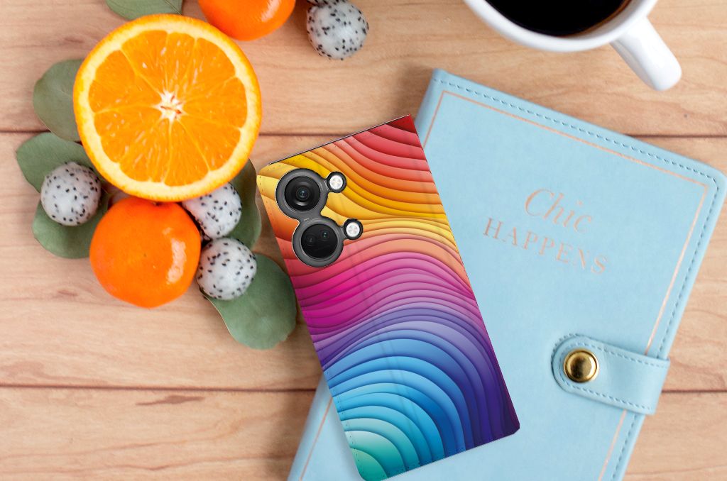 Een regenboog bestaat eigenlijk uit meer dan zeven kleuren, wist je dat? De zichtbare kleuren vloeien geleidelijk in elkaar over, waardoor er eigenlijk meer dan zeven kleuren zijn. Dat wij maar zeven ‘’stroken’’ licht zien, is dus eigenlijk gezichtsbedrog. Toch noemen wij dit hoesje regenboog, omdat wij er blij van worden! Dit design wordt geprint op een Stand Case speciaal op maat gemaakt voor de OnePlus Nord 3. In dit hoesje kun je een pasje kwijt, super fijn toch? Vouw het hoesje om en zet het horizontaal neer voor als je graag filmpjes op je OnePlus Nord 3 kijkt. De magneten aan de binnenkant zorgen ervoor dat het hoesje dicht blijft in bijv. je tas. Bescherm jouw smartphone vandaag nog met dit toffe regenboog hoesje!