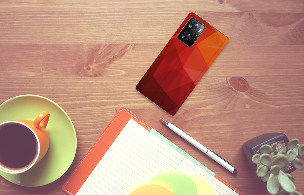 Houd jij van abstracte vormen? Dan is dit polygon red hoesje zeker iets voor jou! Door de verschillende kleuren en het verloop van donker naar licht val je gegarandeerd op met dit hoesje. Dit toffe design voor je OPPO A57 | A57s | A77 4G wordt geprint op een Stand Case waarin je een pasje kwijt kunt. Vouw het hoesje om en zet het horizontaal neer voor als je graag filmpjes op je OPPO A57 | A57s | A77 4G kijkt. De magneten aan de binnenkant zorgen ervoor dat het hoesje dicht blijft in bijv. je tas. Bescherm jouw smartphone vandaag nog met dit toffe polygon red design hoesje!