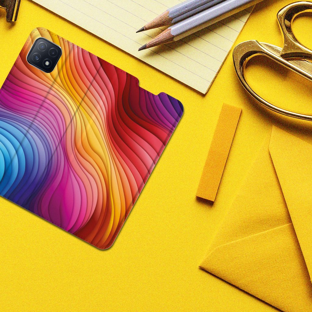 Een regenboog bestaat eigenlijk uit meer dan zeven kleuren, wist je dat? De zichtbare kleuren vloeien geleidelijk in elkaar over, waardoor er eigenlijk meer dan zeven kleuren zijn. Dat wij maar zeven ‘’stroken’’ licht zien, is dus eigenlijk gezichtsbedrog. Toch noemen wij dit hoesje regenboog, omdat wij er blij van worden! Dit design wordt geprint op een Stand Case speciaal op maat gemaakt voor de OPPO A73 5G. In dit hoesje kun je een pasje kwijt, super fijn toch? Vouw het hoesje om en zet het horizontaal neer voor als je graag filmpjes op je OPPO A73 5G kijkt. De magneten aan de binnenkant zorgen ervoor dat het hoesje dicht blijft in bijv. je tas. Bescherm jouw smartphone vandaag nog met dit toffe regenboog hoesje!