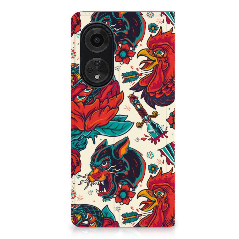 Ben je op zoek naar een stoer hoesje voor je OPPO A98 5G? Dan is dit hoesje in old skool stijl zeker iets voor jou! Het heeft wel iets weg van een tatoeage, vind je ook niet? Dit old skool vintage design wordt geprint op een Stand Case waarin je een pasje kwijt kunt. Vouw het hoesje om en zet het horizontaal neer voor als je graag filmpjes op je OPPO A98 5G kijkt. De magneten aan de binnenkant zorgen ervoor dat het hoesje dicht blijft in bijv. je tas. Bescherm jouw smartphone vandaag nog met dit stoere old skool design hoesje!