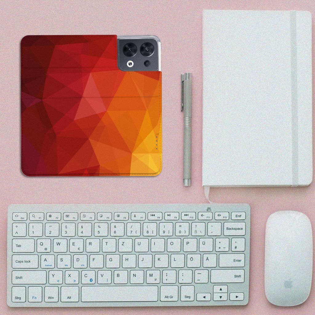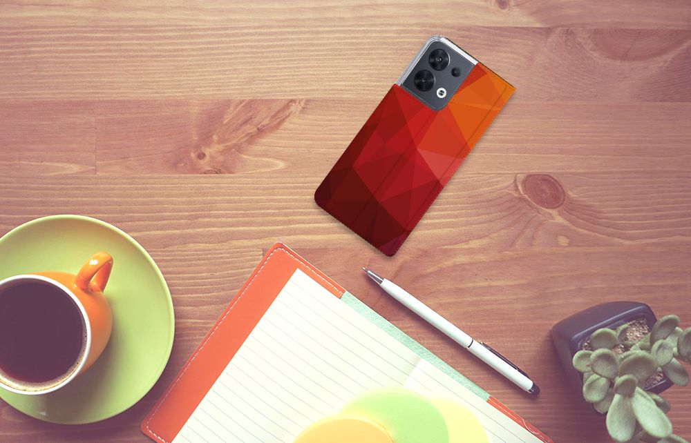 Houd jij van abstracte vormen? Dan is dit polygon red hoesje zeker iets voor jou! Door de verschillende kleuren en het verloop van donker naar licht val je gegarandeerd op met dit hoesje. Dit toffe design voor je OPPO Reno8 wordt geprint op een Stand Case waarin je een pasje kwijt kunt. Vouw het hoesje om en zet het horizontaal neer voor als je graag filmpjes op je OPPO Reno8 kijkt. De magneten aan de binnenkant zorgen ervoor dat het hoesje dicht blijft in bijv. je tas. Bescherm jouw smartphone vandaag nog met dit toffe polygon red design hoesje!