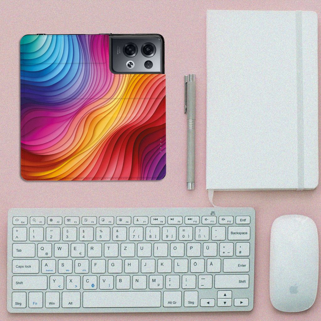 Een regenboog bestaat eigenlijk uit meer dan zeven kleuren, wist je dat? De zichtbare kleuren vloeien geleidelijk in elkaar over, waardoor er eigenlijk meer dan zeven kleuren zijn. Dat wij maar zeven ‘’stroken’’ licht zien, is dus eigenlijk gezichtsbedrog. Toch noemen wij dit hoesje regenboog, omdat wij er blij van worden! Dit design wordt geprint op een Stand Case speciaal op maat gemaakt voor de OPPO Reno8 Pro. In dit hoesje kun je een pasje kwijt, super fijn toch? Vouw het hoesje om en zet het horizontaal neer voor als je graag filmpjes op je OPPO Reno8 Pro kijkt. De magneten aan de binnenkant zorgen ervoor dat het hoesje dicht blijft in bijv. je tas. Bescherm jouw smartphone vandaag nog met dit toffe regenboog hoesje!