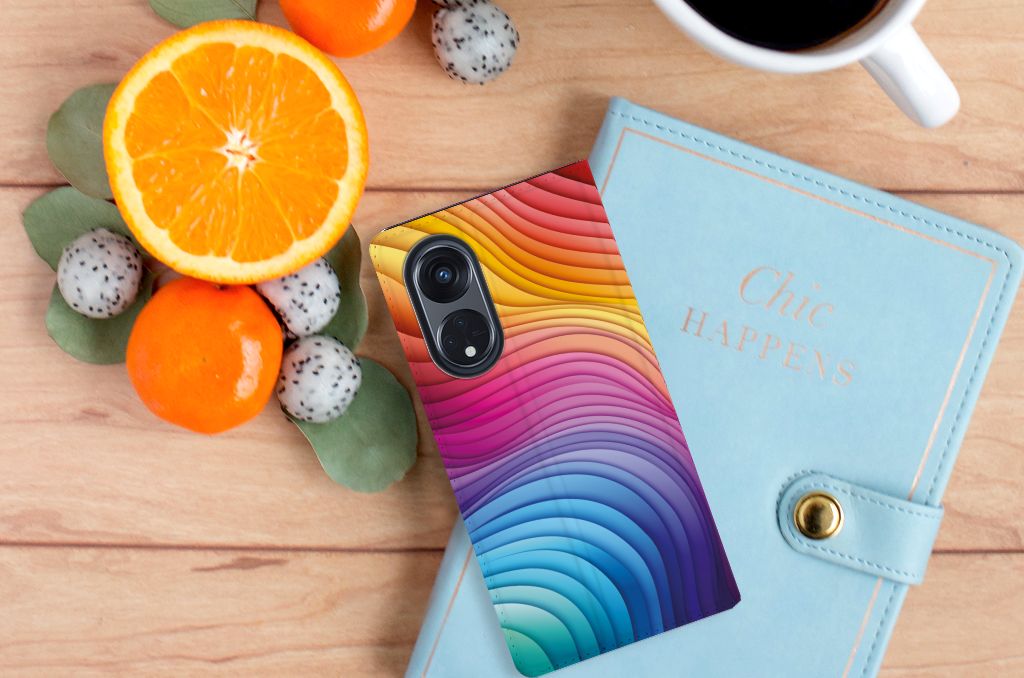 Een regenboog bestaat eigenlijk uit meer dan zeven kleuren, wist je dat? De zichtbare kleuren vloeien geleidelijk in elkaar over, waardoor er eigenlijk meer dan zeven kleuren zijn. Dat wij maar zeven ‘’stroken’’ licht zien, is dus eigenlijk gezichtsbedrog. Toch noemen wij dit hoesje regenboog, omdat wij er blij van worden! Dit design wordt geprint op een Stand Case speciaal op maat gemaakt voor de OPPO Reno8 T 5G. In dit hoesje kun je een pasje kwijt, super fijn toch? Vouw het hoesje om en zet het horizontaal neer voor als je graag filmpjes op je OPPO Reno8 T 5G kijkt. De magneten aan de binnenkant zorgen ervoor dat het hoesje dicht blijft in bijv. je tas. Bescherm jouw smartphone vandaag nog met dit toffe regenboog hoesje!