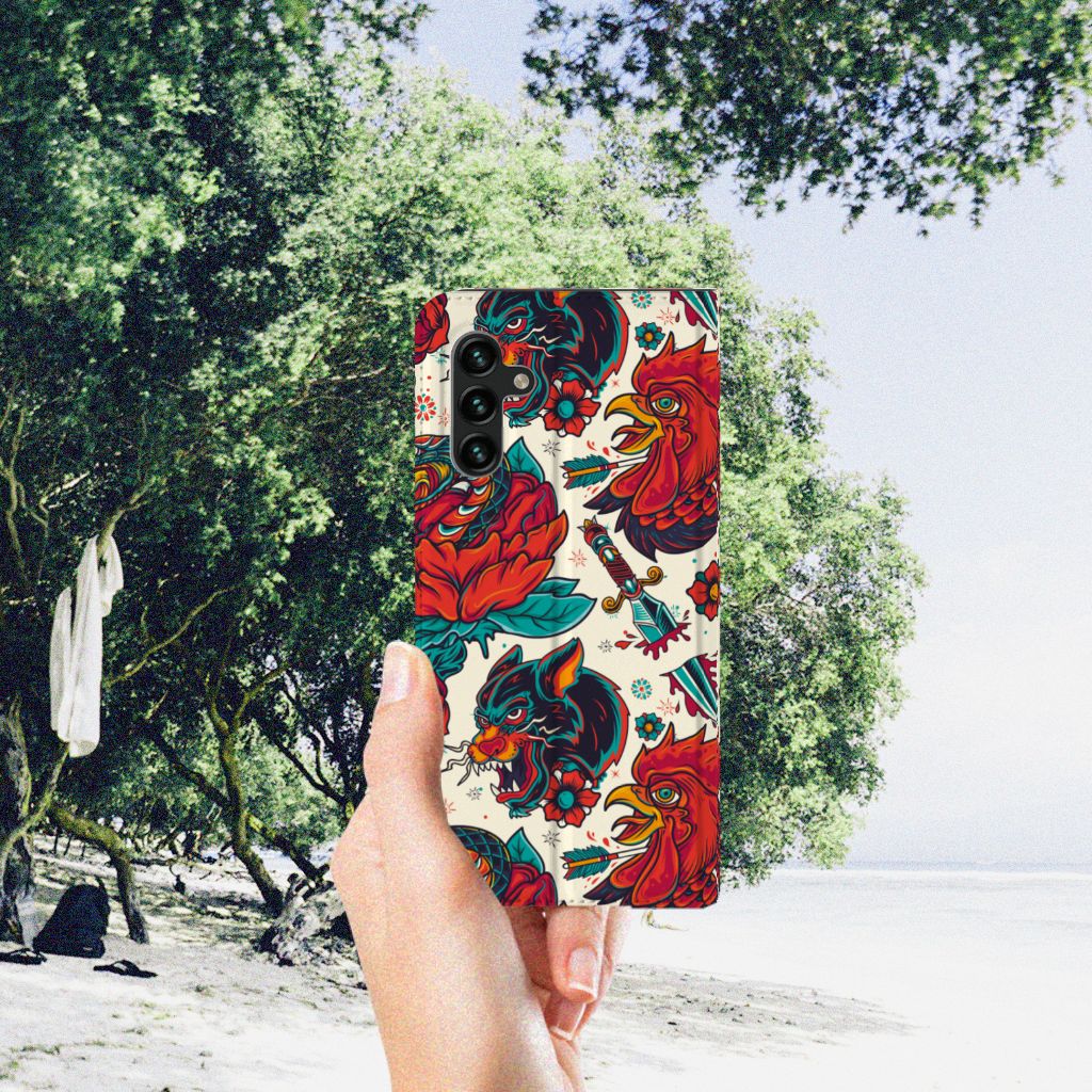 Ben je op zoek naar een stoer hoesje voor je Samsung Galaxy A13 (5G) | Samsung Galaxy A04s? Dan is dit hoesje in old skool stijl zeker iets voor jou! Het heeft wel iets weg van een tatoeage, vind je ook niet? Dit old skool vintage design wordt geprint op een Stand Case waarin je een pasje kwijt kunt. Vouw het hoesje om en zet het horizontaal neer voor als je graag filmpjes op je Samsung Galaxy A13 (5G) | Samsung Galaxy A04s kijkt. De magneten aan de binnenkant zorgen ervoor dat het hoesje dicht blijft in bijv. je tas. Bescherm jouw smartphone vandaag nog met dit stoere old skool design hoesje!