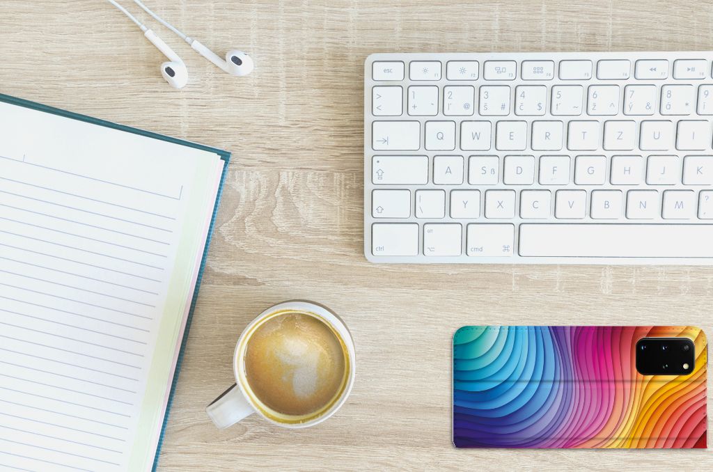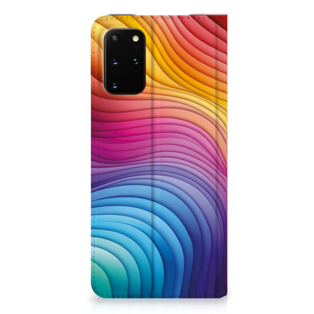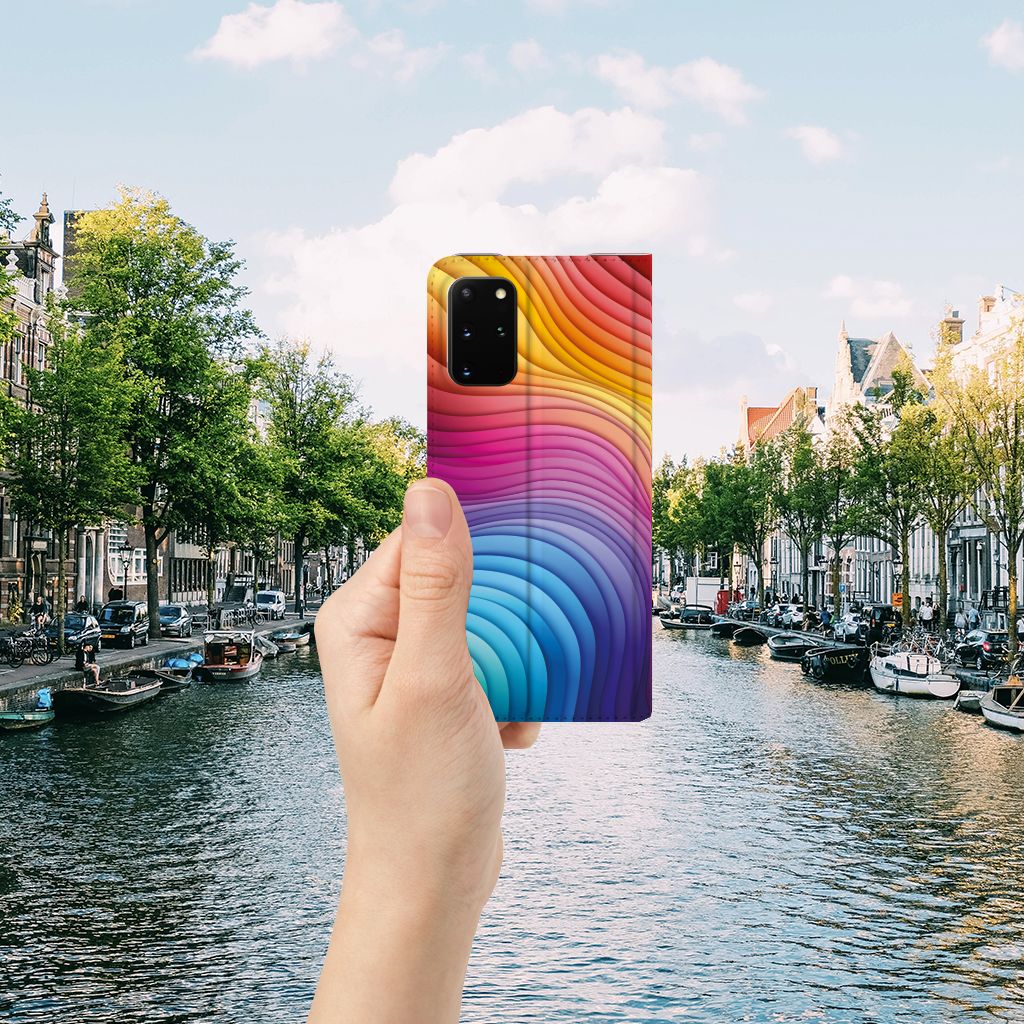 Een regenboog bestaat eigenlijk uit meer dan zeven kleuren, wist je dat? De zichtbare kleuren vloeien geleidelijk in elkaar over, waardoor er eigenlijk meer dan zeven kleuren zijn. Dat wij maar zeven ‘’stroken’’ licht zien, is dus eigenlijk gezichtsbedrog. Toch noemen wij dit hoesje regenboog, omdat wij er blij van worden! Dit design wordt geprint op een Stand Case speciaal op maat gemaakt voor de Samsung Galaxy S20 Plus. In dit hoesje kun je een pasje kwijt, super fijn toch? Vouw het hoesje om en zet het horizontaal neer voor als je graag filmpjes op je Samsung Galaxy S20 Plus kijkt. De magneten aan de binnenkant zorgen ervoor dat het hoesje dicht blijft in bijv. je tas. Bescherm jouw smartphone vandaag nog met dit toffe regenboog hoesje!