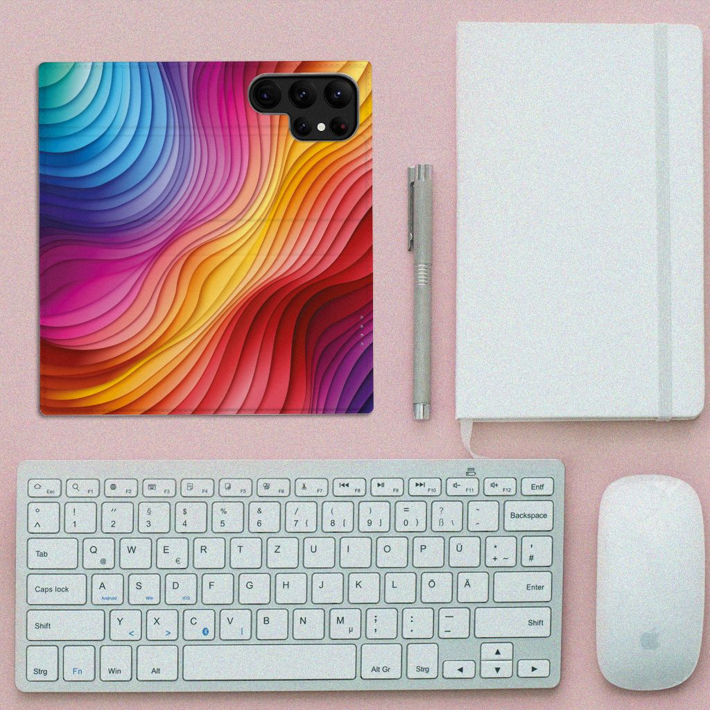 Een regenboog bestaat eigenlijk uit meer dan zeven kleuren, wist je dat? De zichtbare kleuren vloeien geleidelijk in elkaar over, waardoor er eigenlijk meer dan zeven kleuren zijn. Dat wij maar zeven ‘’stroken’’ licht zien, is dus eigenlijk gezichtsbedrog. Toch noemen wij dit hoesje regenboog, omdat wij er blij van worden! Dit design wordt geprint op een Stand Case speciaal op maat gemaakt voor de Samsung Galaxy S23 Ultra. In dit hoesje kun je een pasje kwijt, super fijn toch? Vouw het hoesje om en zet het horizontaal neer voor als je graag filmpjes op je Samsung Galaxy S23 Ultra kijkt. De magneten aan de binnenkant zorgen ervoor dat het hoesje dicht blijft in bijv. je tas. Bescherm jouw smartphone vandaag nog met dit toffe regenboog hoesje!
