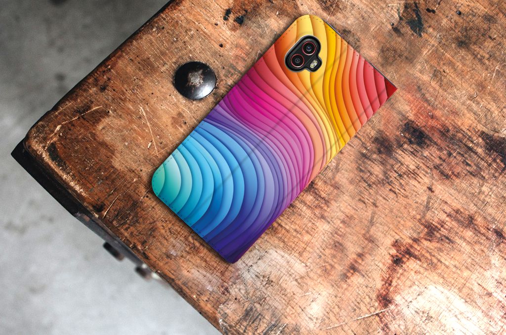 Een regenboog bestaat eigenlijk uit meer dan zeven kleuren, wist je dat? De zichtbare kleuren vloeien geleidelijk in elkaar over, waardoor er eigenlijk meer dan zeven kleuren zijn. Dat wij maar zeven ‘’stroken’’ licht zien, is dus eigenlijk gezichtsbedrog. Toch noemen wij dit hoesje regenboog, omdat wij er blij van worden! Dit design wordt geprint op een Stand Case speciaal op maat gemaakt voor de Samsung Galaxy Xcover 6 Pro. In dit hoesje kun je een pasje kwijt, super fijn toch? Vouw het hoesje om en zet het horizontaal neer voor als je graag filmpjes op je Samsung Galaxy Xcover 6 Pro kijkt. De magneten aan de binnenkant zorgen ervoor dat het hoesje dicht blijft in bijv. je tas. Bescherm jouw smartphone vandaag nog met dit toffe regenboog hoesje!