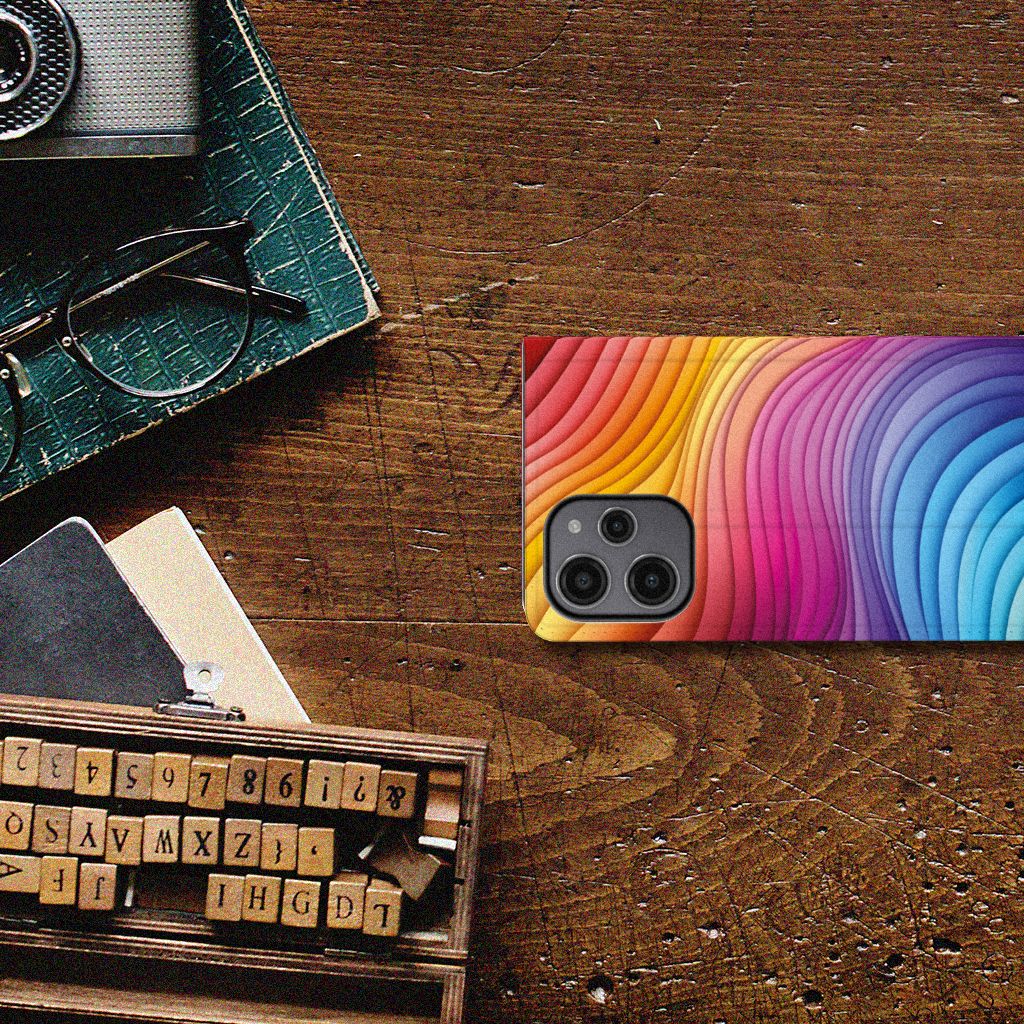 Een regenboog bestaat eigenlijk uit meer dan zeven kleuren, wist je dat? De zichtbare kleuren vloeien geleidelijk in elkaar over, waardoor er eigenlijk meer dan zeven kleuren zijn. Dat wij maar zeven ‘’stroken’’ licht zien, is dus eigenlijk gezichtsbedrog. Toch noemen wij dit hoesje regenboog, omdat wij er blij van worden! Dit design wordt geprint op een Stand Case speciaal op maat gemaakt voor de Xiaomi Redmi 12 4G. In dit hoesje kun je een pasje kwijt, super fijn toch? Vouw het hoesje om en zet het horizontaal neer voor als je graag filmpjes op je Xiaomi Redmi 12 4G kijkt. De magneten aan de binnenkant zorgen ervoor dat het hoesje dicht blijft in bijv. je tas. Bescherm jouw smartphone vandaag nog met dit toffe regenboog hoesje!
