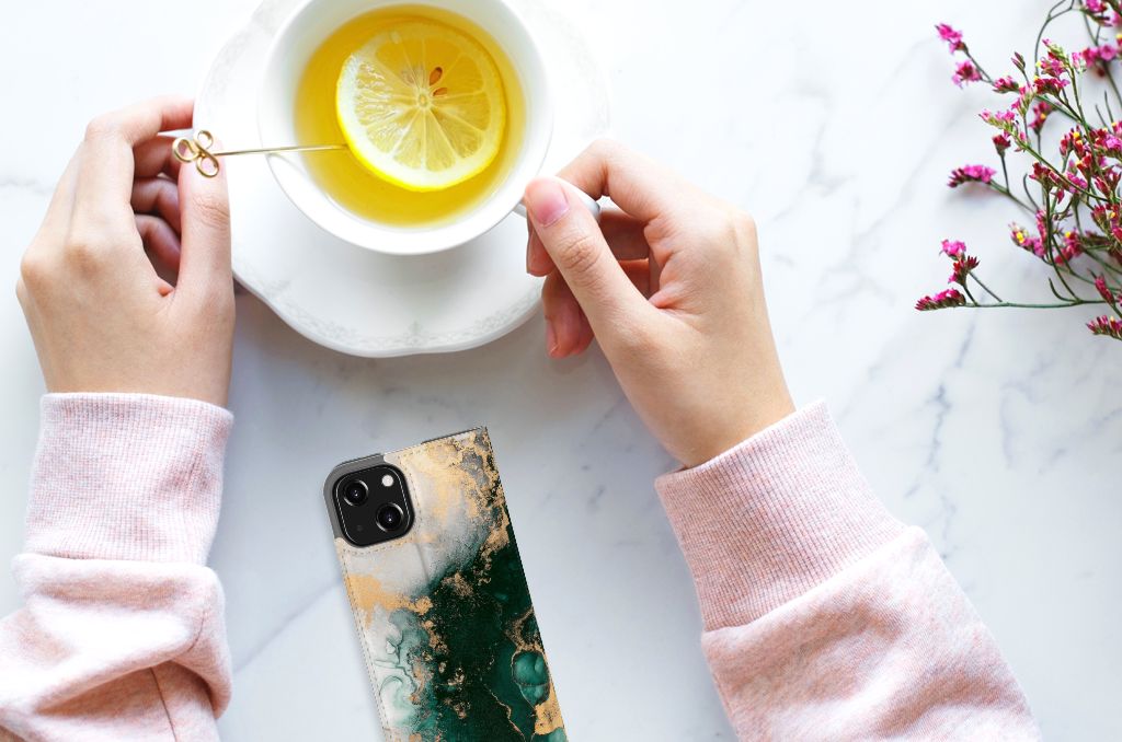 Wist je dat het design marmer zwart het meest verkochte hoesje is? Om onze collectie stenen uit te breiden hebben we het design marmer groen toegevoegd om jouw iPhone 13 Mini nog meer op te laten vallen. Dit marmer groene design wordt geprint op een Standcase waarin je een pasje kwijt kunt. Vouw het hoesje om en zet het horizontaal neer voor als je graag filmpjes op je iPhone 13 Mini kijkt. De magneten aan de binnenkant zorgen ervoor dat het hoesje dicht blijft in bijv. je tas. Bescherm jouw smartphone vandaag nog met dit toffe marmer design hoesje!