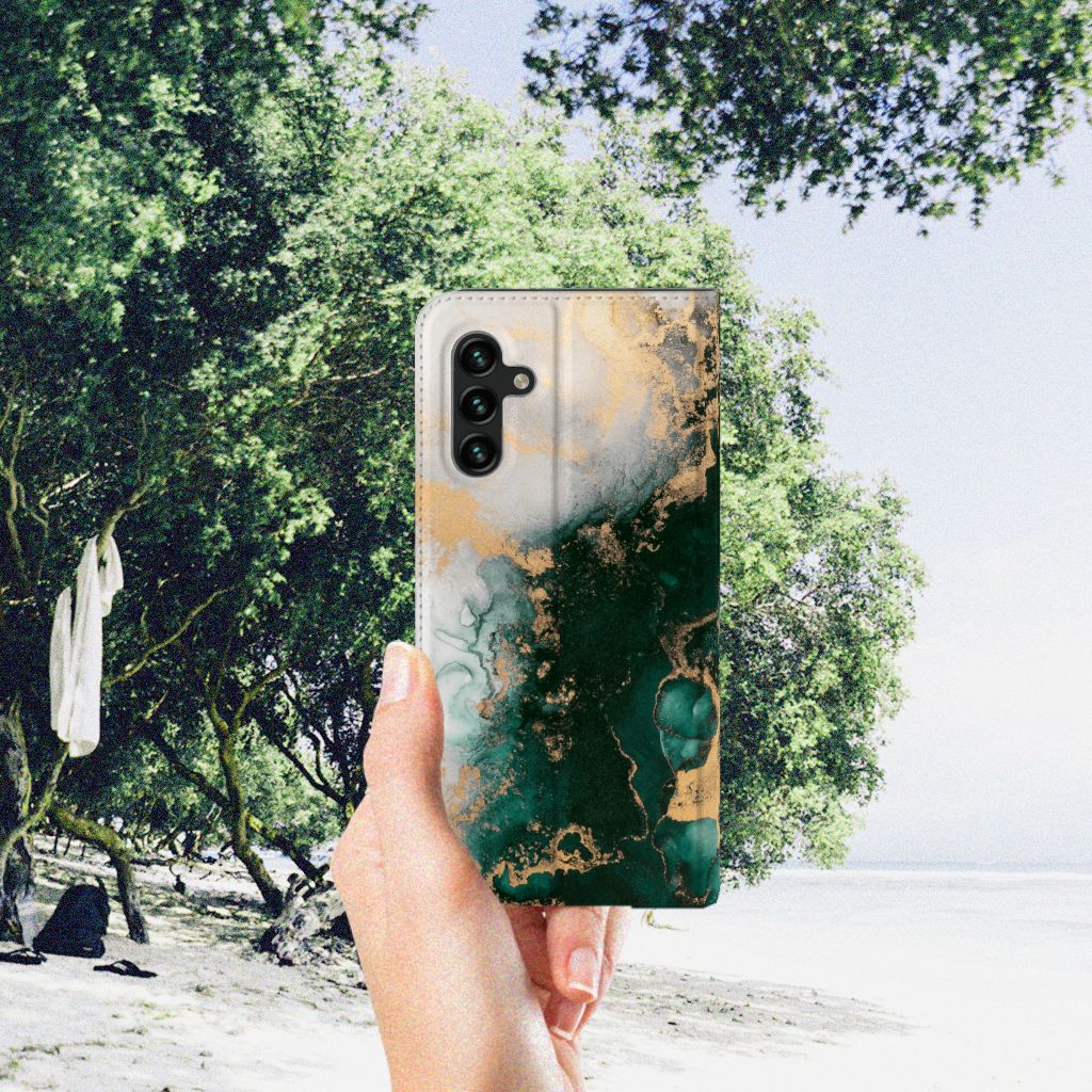 Wist je dat het design marmer zwart het meest verkochte hoesje is? Om onze collectie stenen uit te breiden hebben we het design marmer groen toegevoegd om jouw Samsung Galaxy A13 (5G) | Samsung Galaxy A04s nog meer op te laten vallen. Dit marmer groene design wordt geprint op een Standcase waarin je een pasje kwijt kunt. Vouw het hoesje om en zet het horizontaal neer voor als je graag filmpjes op je Samsung Galaxy A13 (5G) | Samsung Galaxy A04s kijkt. De magneten aan de binnenkant zorgen ervoor dat het hoesje dicht blijft in bijv. je tas. Bescherm jouw smartphone vandaag nog met dit toffe marmer design hoesje!