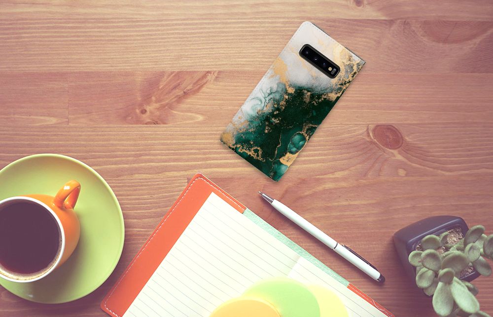 Wist je dat het design marmer zwart het meest verkochte hoesje is? Om onze collectie stenen uit te breiden hebben we het design marmer groen toegevoegd om jouw Samsung Galaxy S10 Plus nog meer op te laten vallen. Dit marmer groene design wordt geprint op een Standcase waarin je een pasje kwijt kunt. Vouw het hoesje om en zet het horizontaal neer voor als je graag filmpjes op je Samsung Galaxy S10 Plus kijkt. De magneten aan de binnenkant zorgen ervoor dat het hoesje dicht blijft in bijv. je tas. Bescherm jouw smartphone vandaag nog met dit toffe marmer design hoesje!