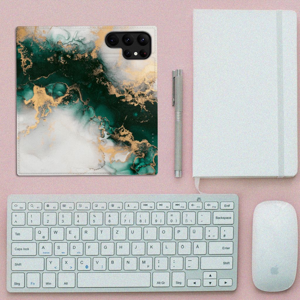 Bookcase voor Samsung Galaxy S23 Ultra Marmer Groen