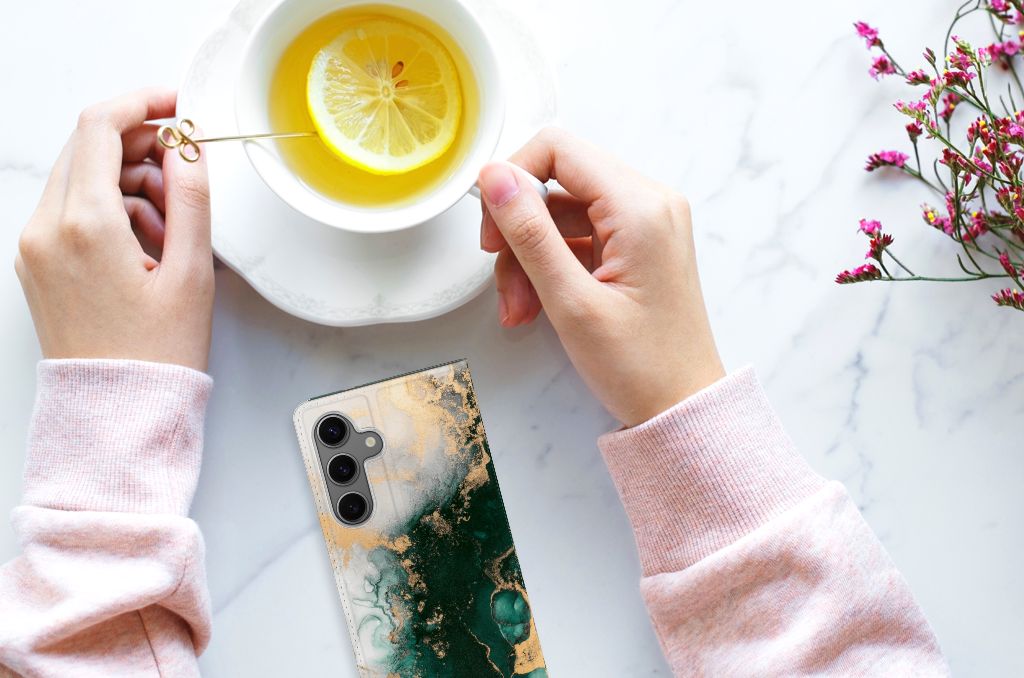 Wist je dat het design marmer zwart het meest verkochte hoesje is? Om onze collectie stenen uit te breiden hebben we het design marmer groen toegevoegd om jouw Samsung Galaxy S24 nog meer op te laten vallen. Dit marmer groene design wordt geprint op een Standcase waarin je een pasje kwijt kunt. Vouw het hoesje om en zet het horizontaal neer voor als je graag filmpjes op je Samsung Galaxy S24 kijkt. De magneten aan de binnenkant zorgen ervoor dat het hoesje dicht blijft in bijv. je tas. Bescherm jouw smartphone vandaag nog met dit toffe marmer design hoesje!