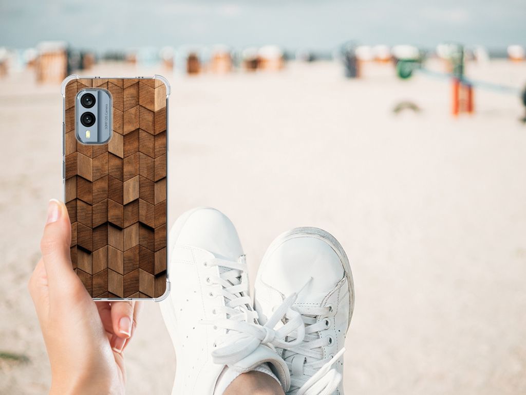 Onze houten hoesjes, niet letterlijk natuurlijk, maar onze design hoesjes met een bedrukking van houtprint zijn erg populair. Daarom werd het tijd voor een uitbreiding van onze collectie houten hoesjes. Hoe tof is dit wooden cubes design? Gegarandeerd dat jij met een uniek hoesje rond loopt! Dit design wordt geprint op een Stevig Telefoonhoesje speciaal op maat gemaakt voor de Nokia X30. Ook fijn zijn de extra dikke hoeken en randen, waardoor je smartphone goed beschermd is bij een val. Alleen de achterkant van je telefoon wordt beschermd. Daarom adviseren wij om dit hoesje in combinatie met een screenprotector te gebruiken. Bestel vandaag nog dit telefoonhoesje met toffe wooden cubes design!