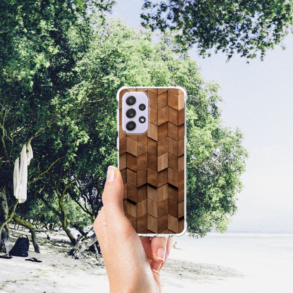 Onze houten hoesjes, niet letterlijk natuurlijk, maar onze design hoesjes met een bedrukking van houtprint zijn erg populair. Daarom werd het tijd voor een uitbreiding van onze collectie houten hoesjes. Hoe tof is dit wooden cubes design? Gegarandeerd dat jij met een uniek hoesje rond loopt! Dit design wordt geprint op een Stevig Telefoonhoesje speciaal op maat gemaakt voor de Samsung Galaxy A33. Ook fijn zijn de extra dikke hoeken en randen, waardoor je smartphone goed beschermd is bij een val. Alleen de achterkant van je telefoon wordt beschermd. Daarom adviseren wij om dit hoesje in combinatie met een screenprotector te gebruiken. Bestel vandaag nog dit telefoonhoesje met toffe wooden cubes design!