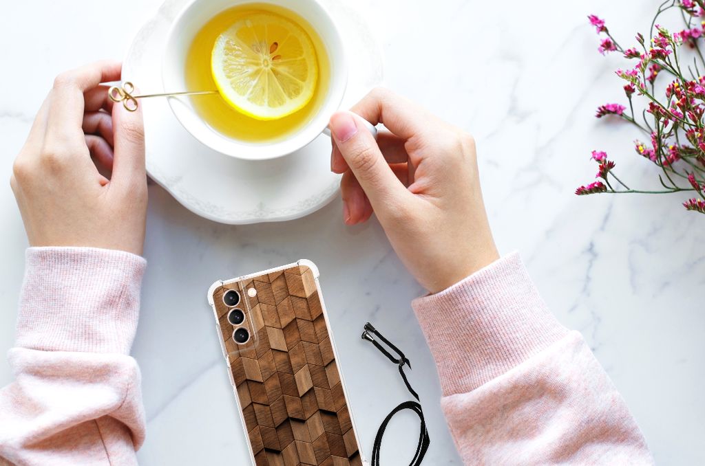 Onze houten hoesjes, niet letterlijk natuurlijk, maar onze design hoesjes met een bedrukking van houtprint zijn erg populair. Daarom werd het tijd voor een uitbreiding van onze collectie houten hoesjes. Hoe tof is dit wooden cubes design? Gegarandeerd dat jij met een uniek hoesje rond loopt! Dit design wordt geprint op een Stevig Telefoonhoesje speciaal op maat gemaakt voor de Samsung Galaxy S21 FE. Ook fijn zijn de extra dikke hoeken en randen, waardoor je smartphone goed beschermd is bij een val. Alleen de achterkant van je telefoon wordt beschermd. Daarom adviseren wij om dit hoesje in combinatie met een screenprotector te gebruiken. Bestel vandaag nog dit telefoonhoesje met toffe wooden cubes design!
