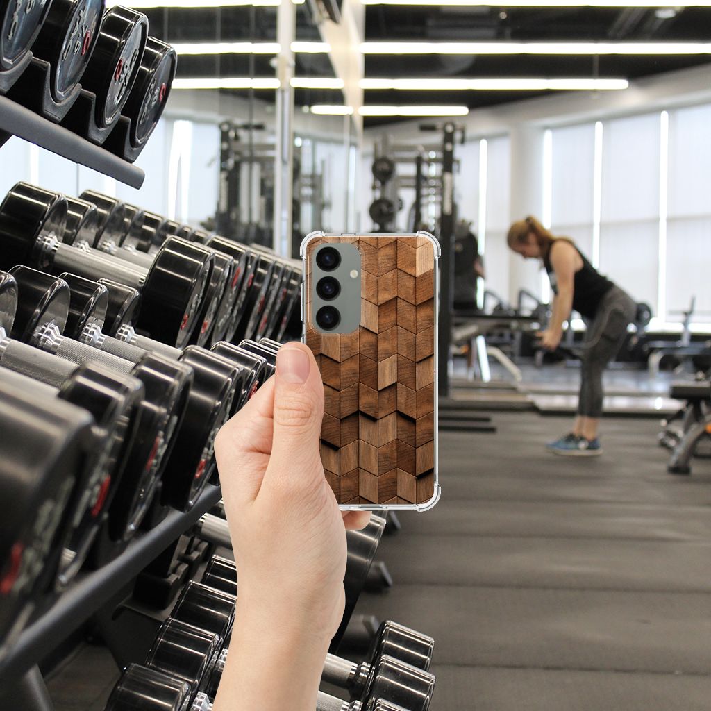 Onze houten hoesjes, niet letterlijk natuurlijk, maar onze design hoesjes met een bedrukking van houtprint zijn erg populair. Daarom werd het tijd voor een uitbreiding van onze collectie houten hoesjes. Hoe tof is dit wooden cubes design? Gegarandeerd dat jij met een uniek hoesje rond loopt! Dit design wordt geprint op een Stevig Telefoonhoesje speciaal op maat gemaakt voor de Samsung Galaxy S24. Ook fijn zijn de extra dikke hoeken en randen, waardoor je smartphone goed beschermd is bij een val. Alleen de achterkant van je telefoon wordt beschermd. Daarom adviseren wij om dit hoesje in combinatie met een screenprotector te gebruiken. Bestel vandaag nog dit telefoonhoesje met toffe wooden cubes design!
