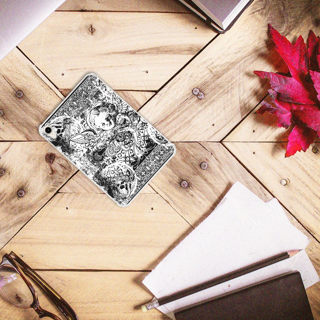 Dit mysterieuze patroon tref je vaak aan op een bandana. Een bandana is een kledingstuk dat om het hoofd of de hals wordt gedragen. Behalve als kledingstuk vindt de bandana soms toepassing als signaal. Een bandana is het eenvoudigste middel als je op de motor of de brommer zit en jezelf wilt beschermen tegen wind, opwaaiend stof of fijn zand. Leden van bekende motorclubs dragen dit kledingstuk dan ook graag, om meerdere redenen. Wil je jouw Apple iPad mini 6 (2021) optimaal beschermen tegen opwaaiend stof, zand of andere bedreigingen, dan is dit design hoesje met Skulls Angel een zeer goede keus. Het design staat op een tablethoesje van TPU. Dit Tablet BackCover wordt alleen aan de bovenkant bedrukt en is zeer flexibel. De randen van het hoesje blijven transparant en worden niet bedrukt. Met dit hoesje past jouw tablet altijd in je tas.