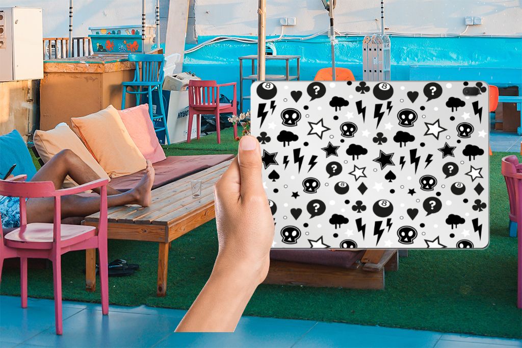 Bliksemflitsen, donderwolken, sterren en biljartballen vliegen op je af als je deze Lenovo Tab E10 Tablet BackCover koopt. Het bijzondere Silver Punk design is van onze eigen ontwerper en vind je in geen enkel andere winkel of webshop. Ben je fan van dit soort stoere en opvallende hoesjes, dan kun je je geluk niet op als je ons assortiment tablet accessoires bekijkt. Dit zeer flexibele tablethoesje heeft alle nodige uitsparingen en past altijd in je tas. Dit hoesje is aan de bovenkant bedrukt met bliksemflitsen, donderwolken, sterren en biljartballen, de randen blijven transparant. Het hoesje is onbreekbaar. Zelfs doodshoofdjes zie je voorbijkomen in het design. Om maar aan te geven dat je met dit zilveren hoesje een krachtige tablet accessoire te pakken hebt.