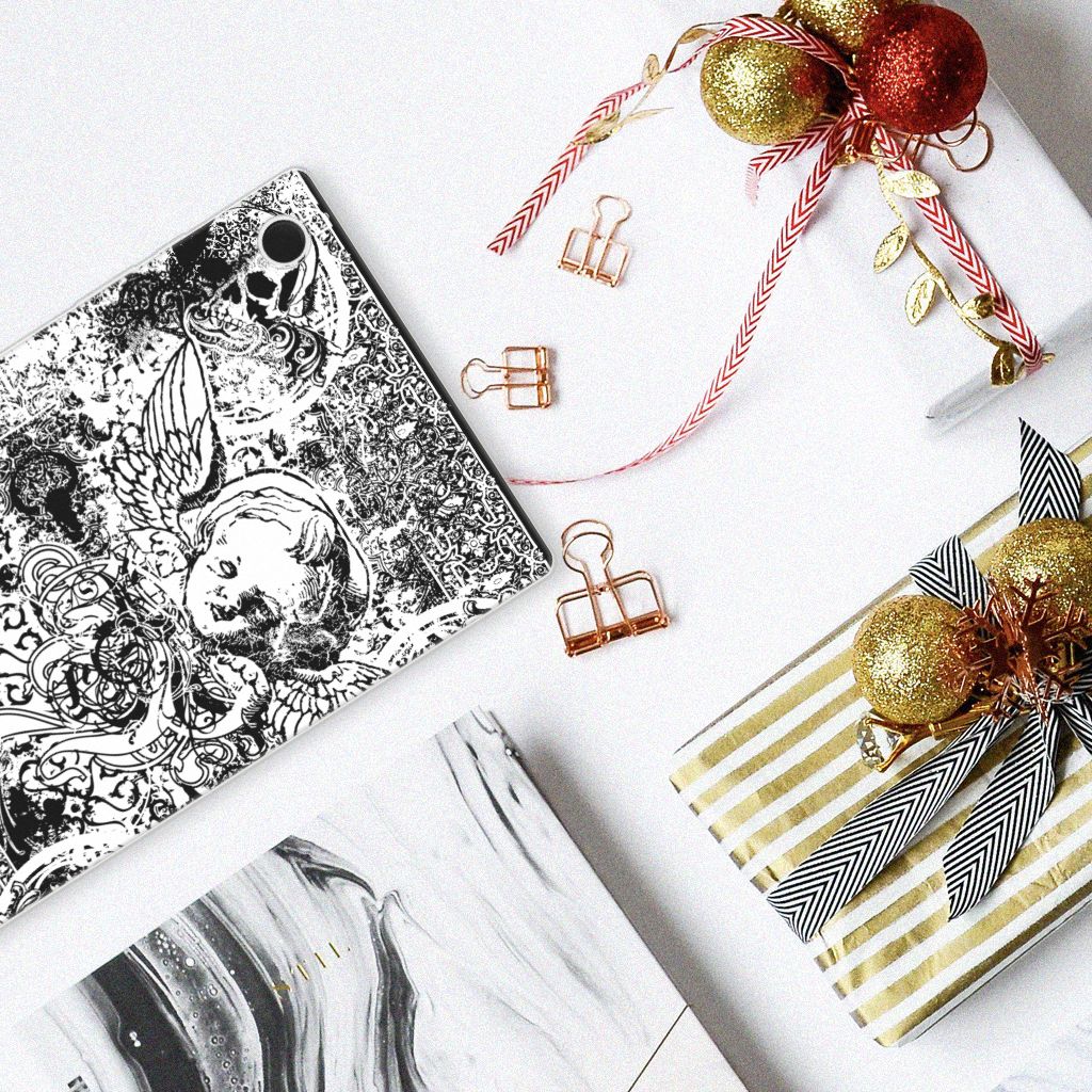 Dit mysterieuze patroon tref je vaak aan op een bandana. Een bandana is een kledingstuk dat om het hoofd of de hals wordt gedragen. Behalve als kledingstuk vindt de bandana soms toepassing als signaal. Een bandana is het eenvoudigste middel als je op de motor of de brommer zit en jezelf wilt beschermen tegen wind, opwaaiend stof of fijn zand. Leden van bekende motorclubs dragen dit kledingstuk dan ook graag, om meerdere redenen. Wil je jouw Samsung Galaxy Tab A8 2021/2022 optimaal beschermen tegen opwaaiend stof, zand of andere bedreigingen, dan is dit design hoesje met Skulls Angel een zeer goede keus. Het design staat op een tablethoesje van TPU. Dit Tablet BackCover wordt alleen aan de bovenkant bedrukt en is zeer flexibel. De randen van het hoesje blijven transparant en worden niet bedrukt. Met dit hoesje past jouw tablet altijd in je tas.