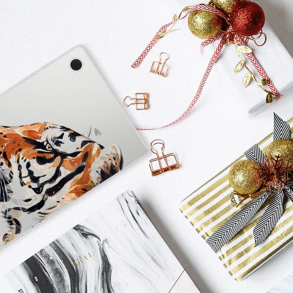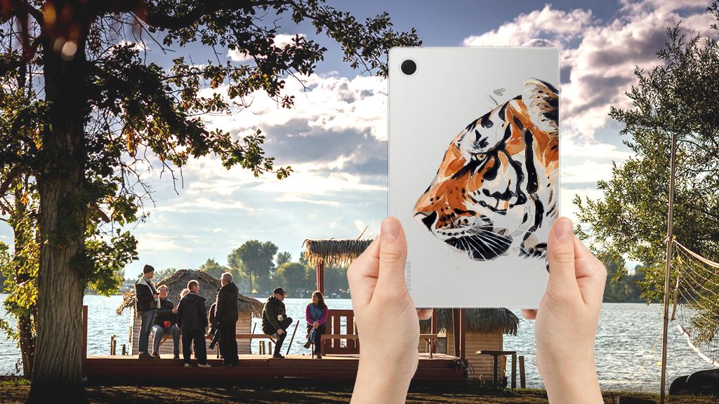 Omdat we tijgers zo bijzonder vinden, hebben we besloten deze voor zeer lage kosten voor jou op een Samsung Galaxy Tab A8 2021/2022 Tablethoes te zetten. Dit kunnen we goedkoop doen omdat we het drukwerk in eigen beheer doen. De tijger staat geschilderd op de tpu case tegen een grijs met wit geblokte achtergrond. De Watercolor Tiger kunnen we bedrukken op verschillende soorten hoesjes, zoals deze tpu cases. Deze case kan exclusief in het bezit van jou komen. Zeker als je er zelf nog unieke teksten en/of beelden aan toevoegt. Het tpu hoesje is zeer flexibel en wordt alleen aan de bovenzijde bedrukt met de tijger. De randen van dit flexibele hoesje blijven doorzichtig. Jij zorgt voor de perfecte bescherming van je tablet met dit tpu hoesje met geschilderde tijger tegen een grijs met witte achtergrond.