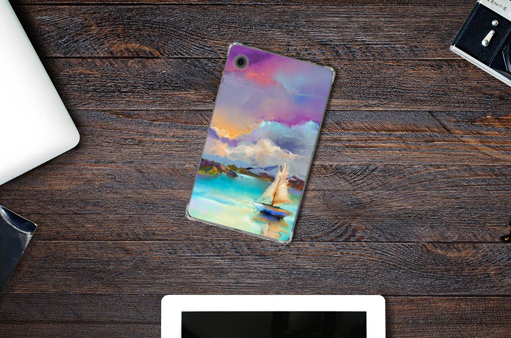 Het mooie ontwerp op dit hoesje zou je zo aan de muur willen hangen. Dit abstracte ‘schilderij’ van een bootje op een meer valt op vanwege de prachtige tinten blauw en paars. Een prachtig hoesje voor de liefhebber van kunst, boten en landschappen. Met een Tablethoes is je Samsung Galaxy Tab A9 goed beschermd. De hoes voor de tablet is gemaakt van TPU, een flexibel maar heel erg sterk plastic dat niet kapot te krijgen is. De inkt die we gebruiken kan in het begin een sterke geur afgeven. Dit is echter tijdelijk en niet schadelijk voor de gezondheid. Na een kleine week verdwijnt de geur vanzelf. We adviseren om dit type hoesje te combineren met een screenprotector, zodat je scherm ook goed beschermd is tegen krassen en beschadigingen.