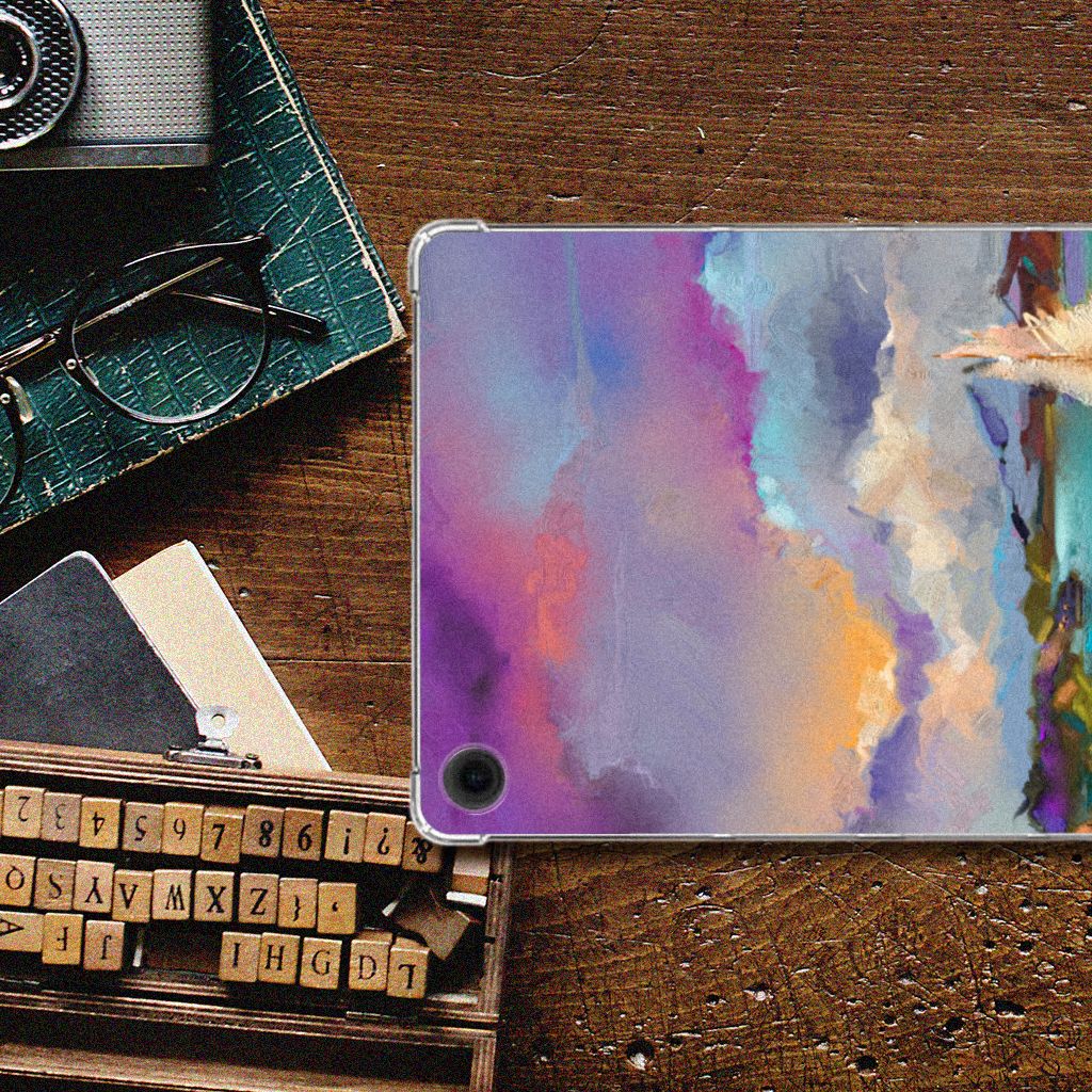 Het mooie ontwerp op dit hoesje zou je zo aan de muur willen hangen. Dit abstracte ‘schilderij’ van een bootje op een meer valt op vanwege de prachtige tinten blauw en paars. Een prachtig hoesje voor de liefhebber van kunst, boten en landschappen. Met een Tablethoes is je Samsung Galaxy Tab A9 Plus goed beschermd. De hoes voor de tablet is gemaakt van TPU, een flexibel maar heel erg sterk plastic dat niet kapot te krijgen is. De inkt die we gebruiken kan in het begin een sterke geur afgeven. Dit is echter tijdelijk en niet schadelijk voor de gezondheid. Na een kleine week verdwijnt de geur vanzelf. We adviseren om dit type hoesje te combineren met een screenprotector, zodat je scherm ook goed beschermd is tegen krassen en beschadigingen.