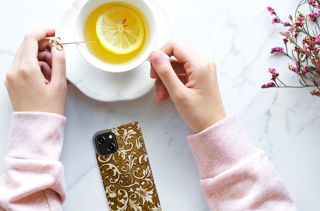 Dit super degelijke en prachtige iPhone 13 Mini Telefoon Hoesje met Barok Goud als achtergrond is een perfecte bescherming voor jouw smartphone. Het goud gecombineerd met opvallende tekeningen wordt op een stand case gezet en is van toegevoegde waarde voor jouw toestel. Het bedrukken doen we in ons eigen magazijn, zodat we de kwaliteit van de case met barok goud achtergrond kunnen garanderen. Dit gouden stand hoesje is op maat gemaakt en heeft een vakje voor een pasje of briefgeld. Daarnaast is de magneet aan de binnenzijde zeer handig. De case sluit hierdoor perfect. De houder aan de binnenzijde is van tpu en zeer flexibel.