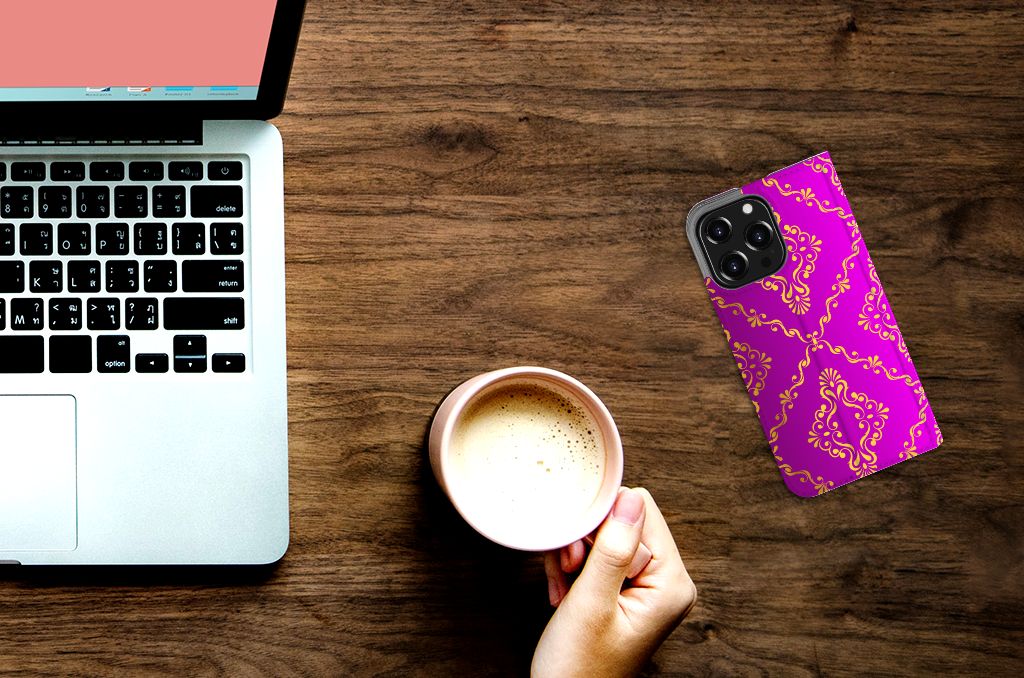 Dit super mooie iPhone 13 Pro Telefoon Hoesje met Barok Roze achtergrond is een geweldige en duurzame bescherming voor jouw smartphone. De roze kleuren en figuren worden met de grootst mogelijke zorg op het hoesje gezet en op alle zijden van de stand case bedrukt. Dit drukwerk doen we in ons eigen magazijn, zodat we de kwaliteit van het hoesje met roze barok achtergrond kunnen garanderen. Dit roze stand hoesje is op maat gemaakt en heeft een vakje voor een pasje of briefgeld. Daarnaast is de magneet aan de binnenzijde zeer handig. De case sluit hierdoor perfect af. De houder aan de binnenzijde is van tpu en zeer flexibel. Nergens anders tref je een stand hoesje met roze barok achtergrond aan dat zo goed past bij jouw smartphone.