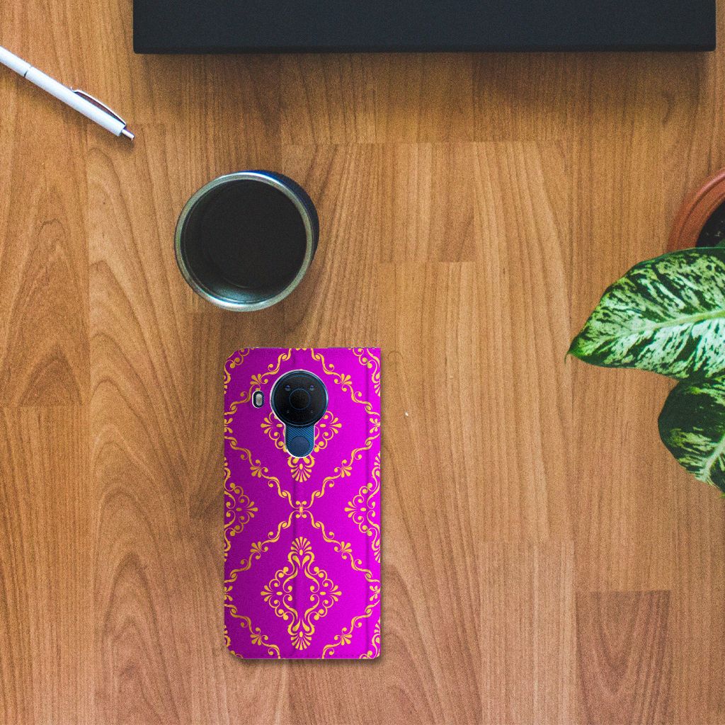 Nokia 5.4 Book Case Zwart Roze Vormen