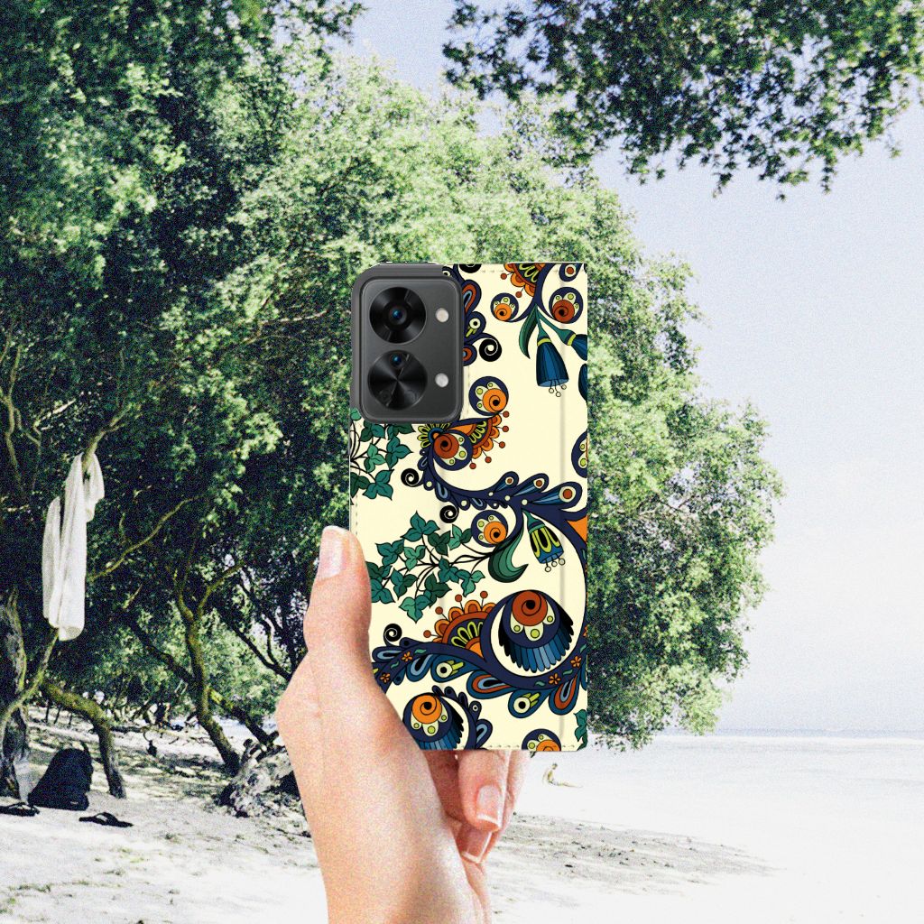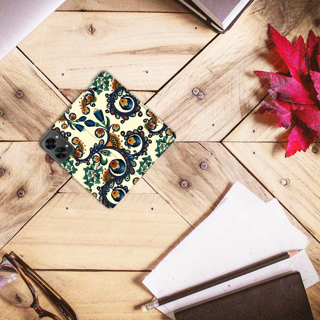 OnePlus Nord 2T Telefoonhoesje met Pasjes Pauw met Bloemen