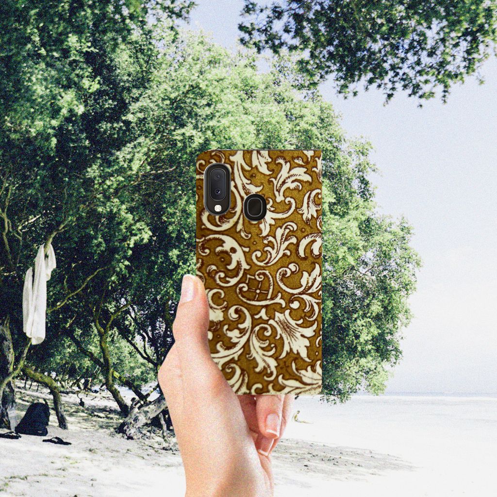 Dit super degelijke en prachtige Samsung Galaxy A20e Telefoon Hoesje met Barok Goud als achtergrond is een perfecte bescherming voor jouw smartphone. Het goud gecombineerd met opvallende tekeningen wordt op een stand case gezet en is van toegevoegde waarde voor jouw toestel. Het bedrukken doen we in ons eigen magazijn, zodat we de kwaliteit van de case met barok goud achtergrond kunnen garanderen. Dit gouden stand hoesje is op maat gemaakt en heeft een vakje voor een pasje of briefgeld. Daarnaast is de magneet aan de binnenzijde zeer handig. De case sluit hierdoor perfect. De houder aan de binnenzijde is van tpu en zeer flexibel.