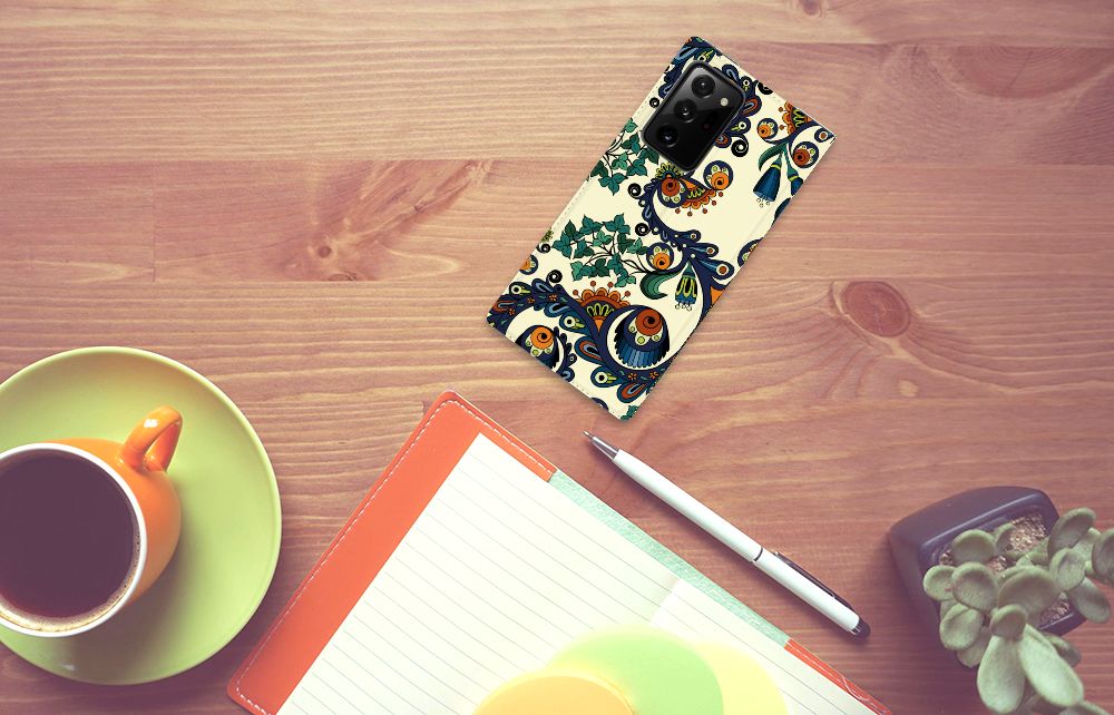 Ben je liefhebber van bloemen met ogen in een barokke stijl? Dan kunnen we jou vast en zeker verblijden met een design hoesje Barok Flower. In de bloemen zijn namelijk een paar ogen verwerkt en dit gegeven maakt het zeer geslaagde Samsung Galaxy Note 20 Ultra Telefoon Hoesje tot een ware eyecatcher. De hele mooie print met bloemen en ogen in de stijl barok zetten we op de stand case op het moment dat jij je bestelling plaatst. Hierdoor krijgt jouw telefoon een print met een bijzondere uitstraling. Het bedrukken van deze case doen we helemaal zelf. De bloemen met ogen in barok stijl zien er op dit mooie design hoesje oogverblindend uit. De stand case heeft een standaard en wordt aan de binnenzijde met een magneet afgesloten. Je bankpas of creditcard kun je kwijt in het vakje aan de binnenkant van het telefoonhoesje met bloemen en ogen in barok stijl.