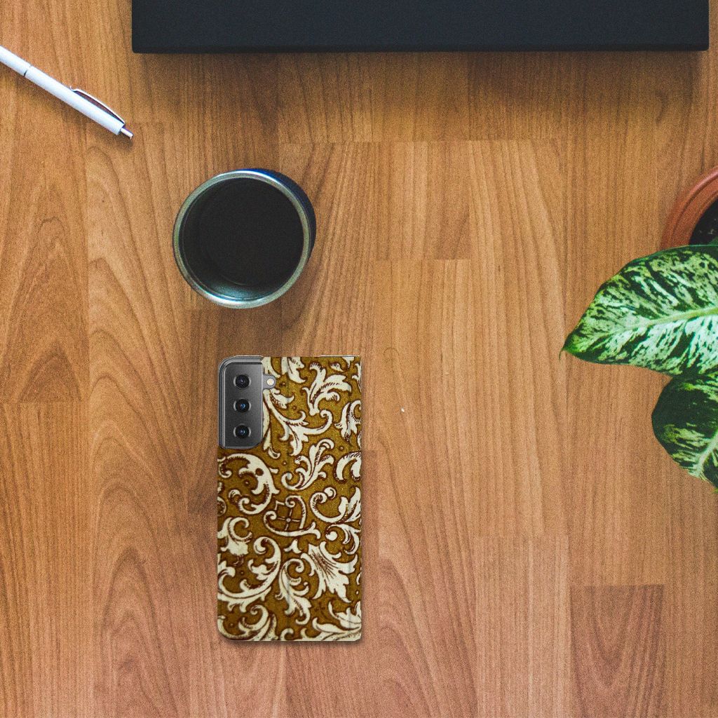 Dit super degelijke en prachtige Samsung Galaxy S21 Telefoon Hoesje met Barok Goud als achtergrond is een perfecte bescherming voor jouw smartphone. Het goud gecombineerd met opvallende tekeningen wordt op een stand case gezet en is van toegevoegde waarde voor jouw toestel. Het bedrukken doen we in ons eigen magazijn, zodat we de kwaliteit van de case met barok goud achtergrond kunnen garanderen. Dit gouden stand hoesje is op maat gemaakt en heeft een vakje voor een pasje of briefgeld. Daarnaast is de magneet aan de binnenzijde zeer handig. De case sluit hierdoor perfect. De houder aan de binnenzijde is van tpu en zeer flexibel.
