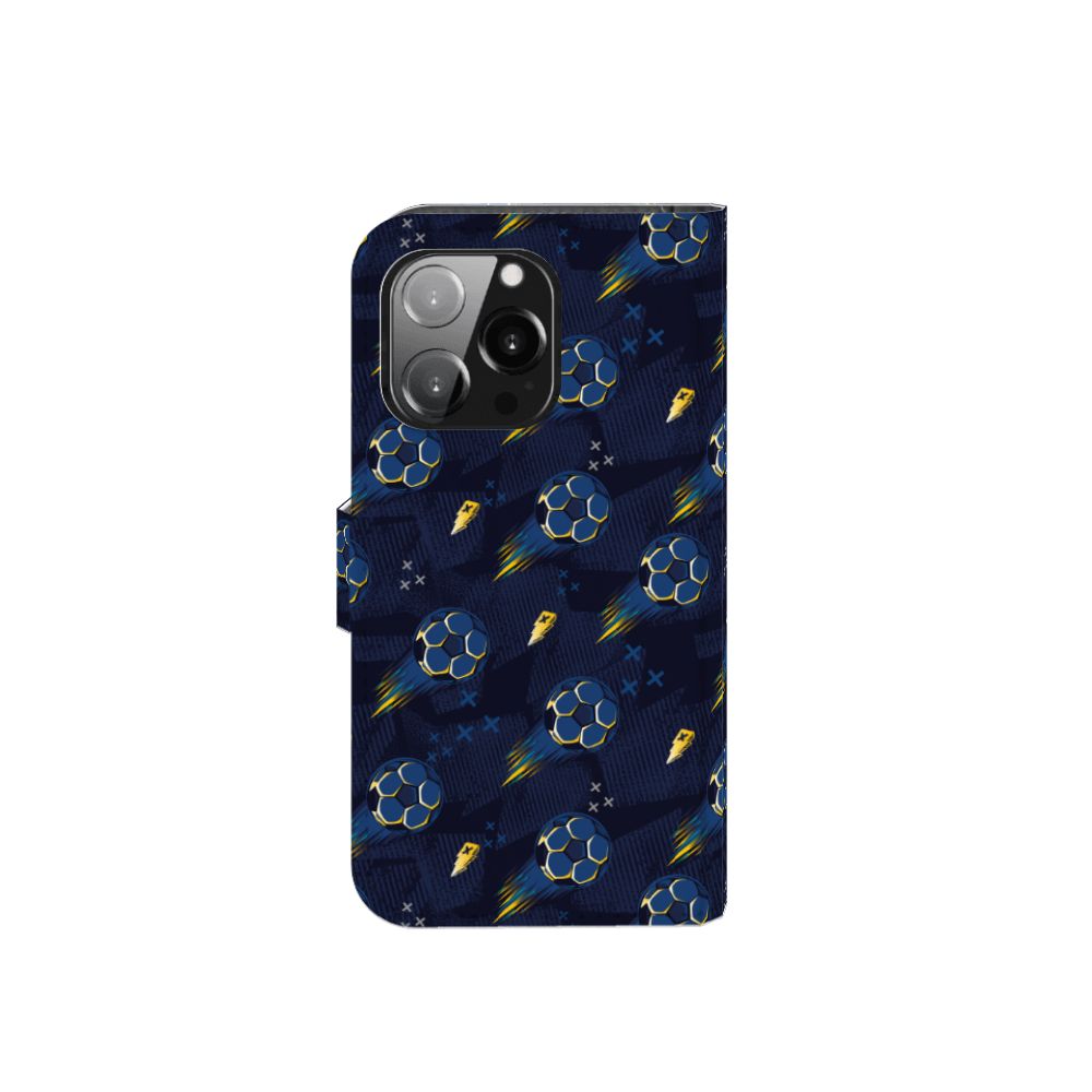 Wist je dat voetbal in 1865 is ontstaan in Nederland door wonende en werkende Britten in ons land? Tegenwoordig ademt Nederland voetbal en is het een van de meest beoefende sport. Iedereen kijkt en speelt het graag en daarom mag dit voetbal design hoesjes zeker niet ontbreken in onze collectie. Dit design wordt geprint op een Telefoon Hoesje speciaal op maat gemaakt voor de iPhone 13 Pro. In dit hoesje kun je drie pasjes kwijt, super handig toch? Het hoesje wordt afgesloten met een sluit lipje, waardoor jouw telefoon altijd goed beschermd is. Bescherm je iPhone 13 Pro vandaag nog dit toffe voetbal design hoesje!