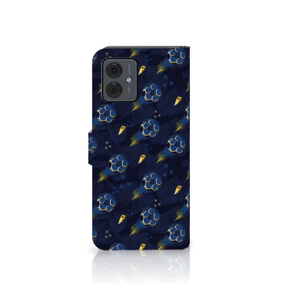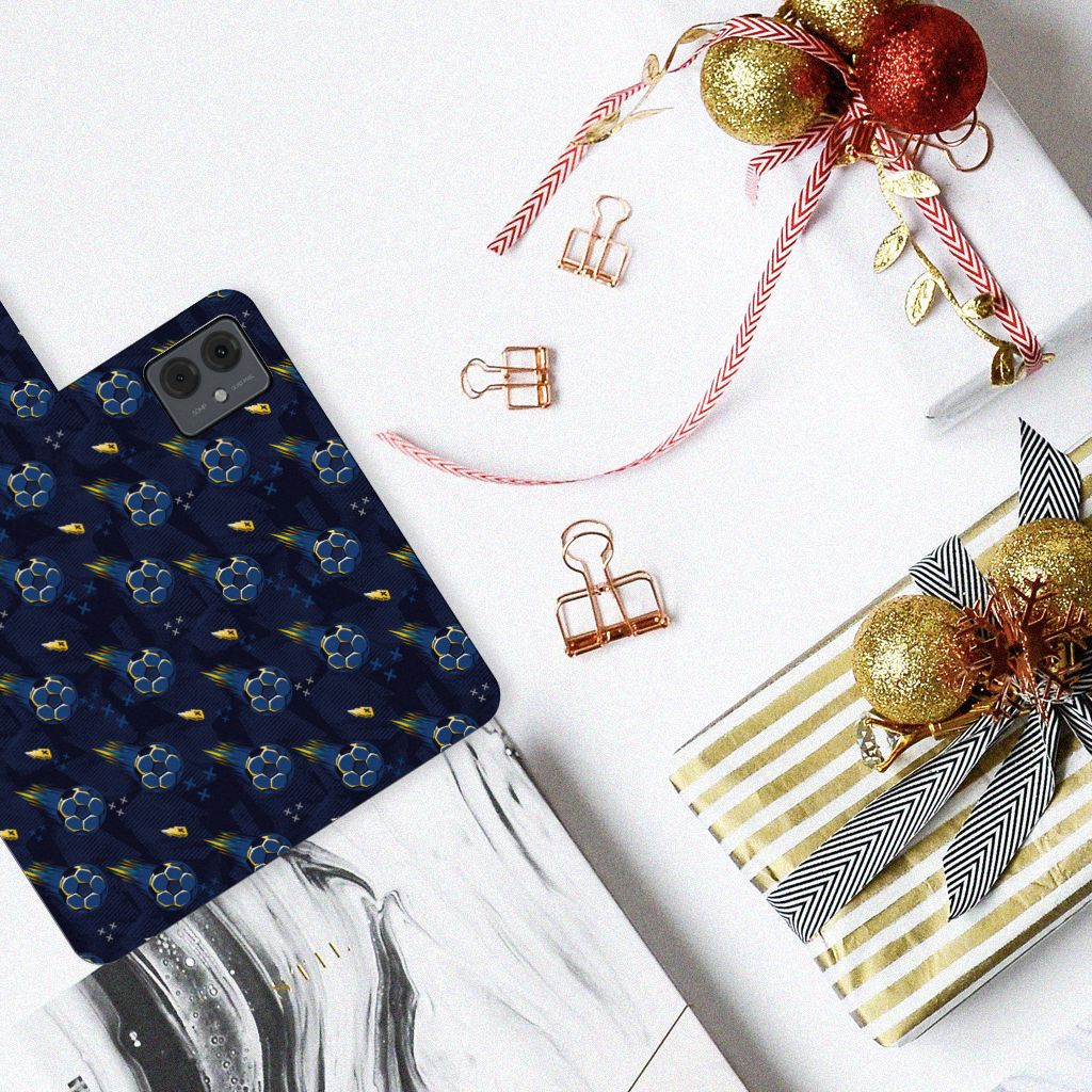 Wist je dat voetbal in 1865 is ontstaan in Nederland door wonende en werkende Britten in ons land? Tegenwoordig ademt Nederland voetbal en is het een van de meest beoefende sport. Iedereen kijkt en speelt het graag en daarom mag dit voetbal design hoesjes zeker niet ontbreken in onze collectie. Dit design wordt geprint op een Telefoon Hoesje speciaal op maat gemaakt voor de Motorola Moto G14. In dit hoesje kun je drie pasjes kwijt, super handig toch? Het hoesje wordt afgesloten met een sluit lipje, waardoor jouw telefoon altijd goed beschermd is. Bescherm je Motorola Moto G14 vandaag nog dit toffe voetbal design hoesje!