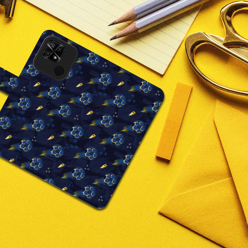 Wist je dat voetbal in 1865 is ontstaan in Nederland door wonende en werkende Britten in ons land? Tegenwoordig ademt Nederland voetbal en is het een van de meest beoefende sport. Iedereen kijkt en speelt het graag en daarom mag dit voetbal design hoesjes zeker niet ontbreken in onze collectie. Dit design wordt geprint op een Telefoon Hoesje speciaal op maat gemaakt voor de Xiaomi Redmi 10C. In dit hoesje kun je drie pasjes kwijt, super handig toch? Het hoesje wordt afgesloten met een sluit lipje, waardoor jouw telefoon altijd goed beschermd is. Bescherm je Xiaomi Redmi 10C vandaag nog dit toffe voetbal design hoesje!