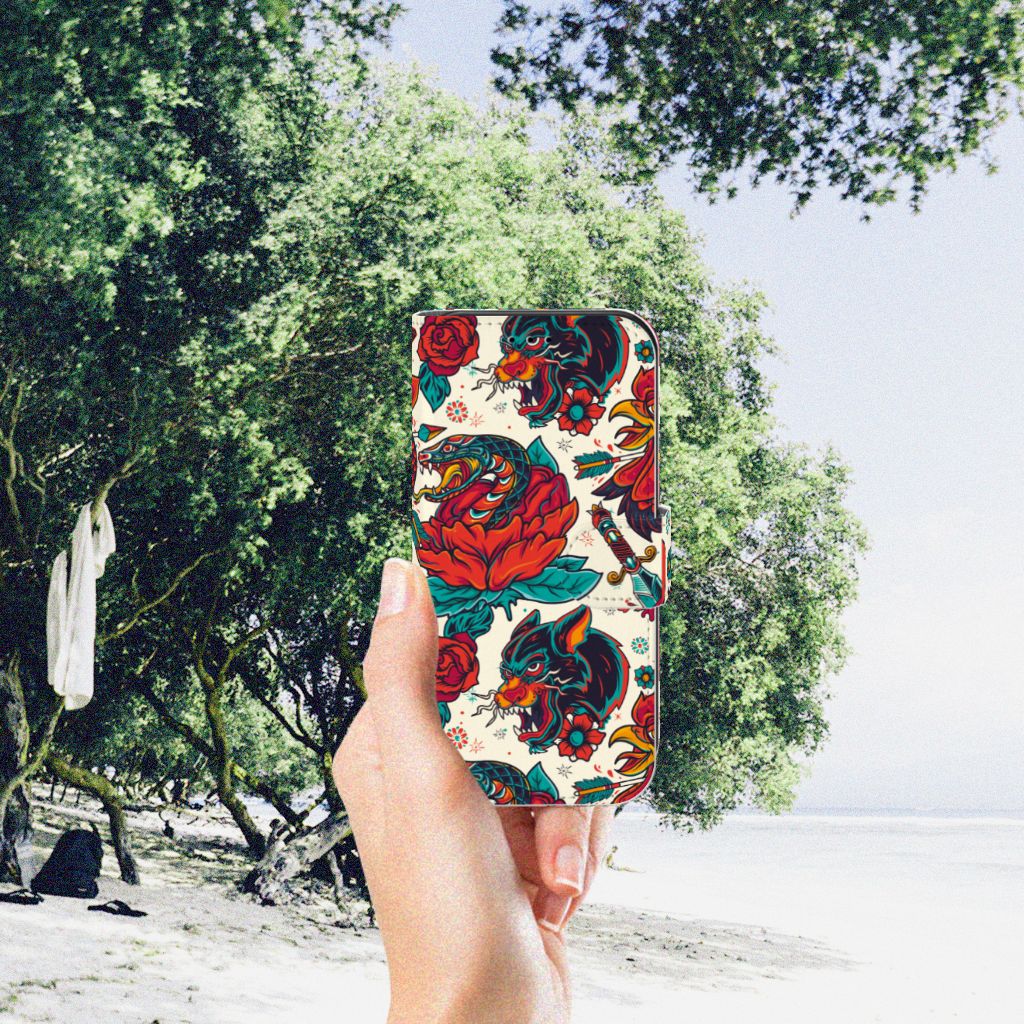Ben je op zoek naar een stoer hoesje voor je Apple iPhone 11 Pro? Dan is dit hoesje in old skool stijl zeker iets voor jou! Het heeft wel iets weg van een tatoeage, vind je ook niet? Dit old skool vintage design wordt geprint op een Telefoonhoesje met foto waarin je drie pasjes kwijt kunt. Het hoesje wordt afgesloten met een sluit lipje, waardoor jouw telefoon altijd goed beschermd is. Bescherm je Apple iPhone 11 Pro vandaag nog met dit stoere old skool design hoesje!