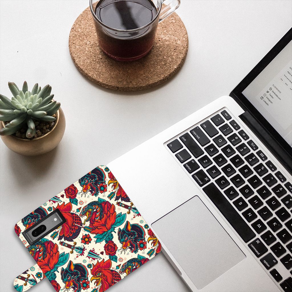 Ben je op zoek naar een stoer hoesje voor je Google Pixel 7? Dan is dit hoesje in old skool stijl zeker iets voor jou! Het heeft wel iets weg van een tatoeage, vind je ook niet? Dit old skool vintage design wordt geprint op een Telefoonhoesje met foto waarin je drie pasjes kwijt kunt. Het hoesje wordt afgesloten met een sluit lipje, waardoor jouw telefoon altijd goed beschermd is. Bescherm je Google Pixel 7 vandaag nog met dit stoere old skool design hoesje!